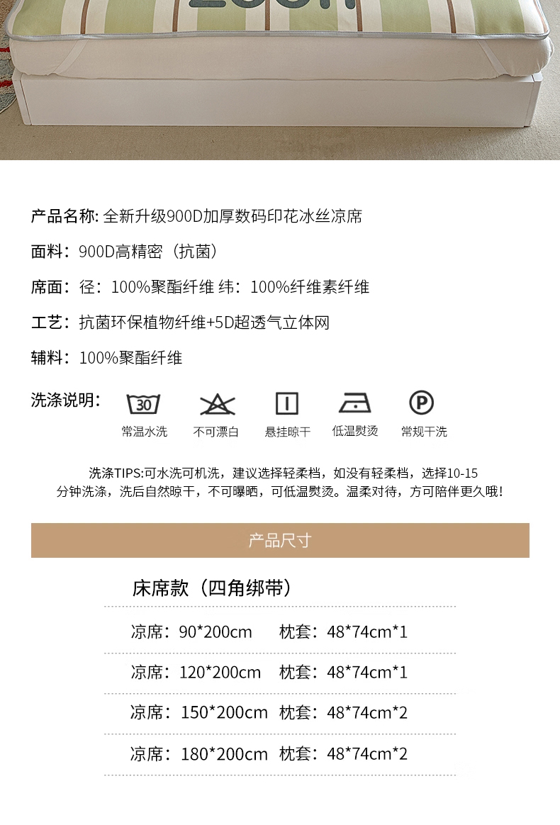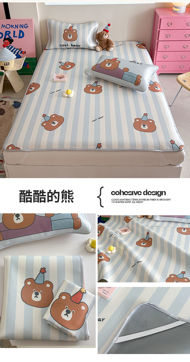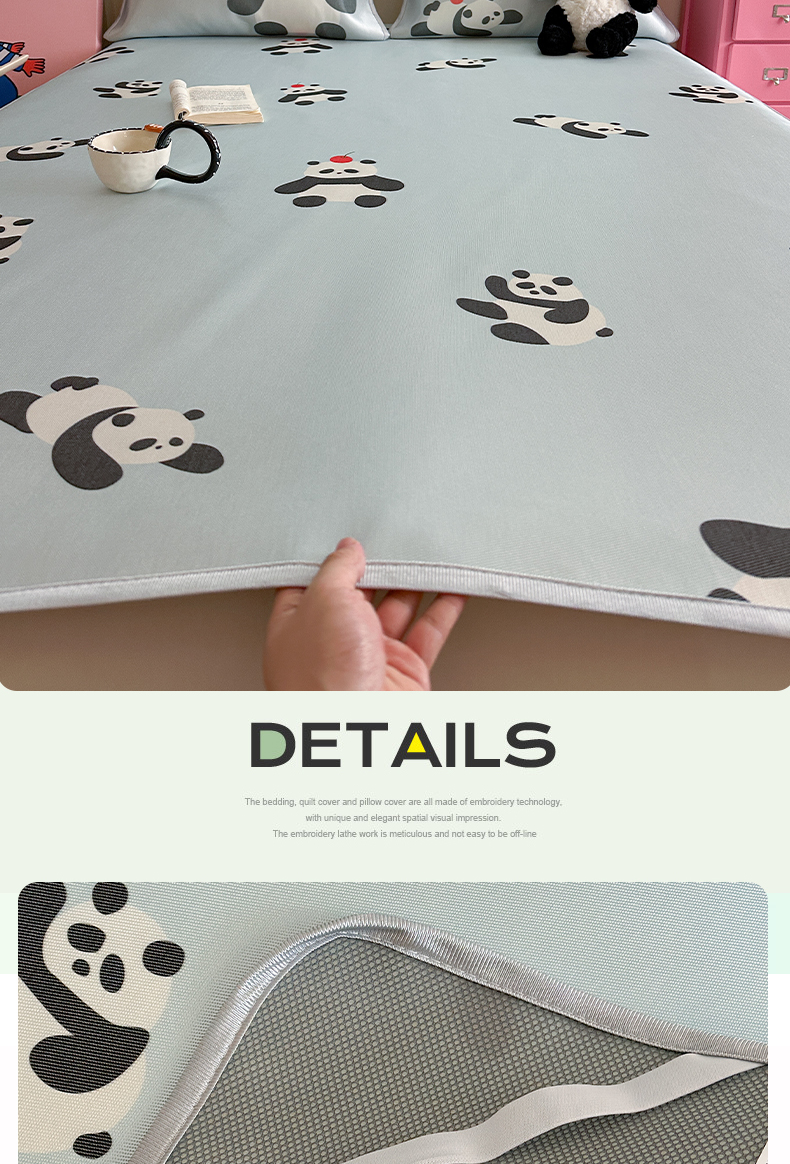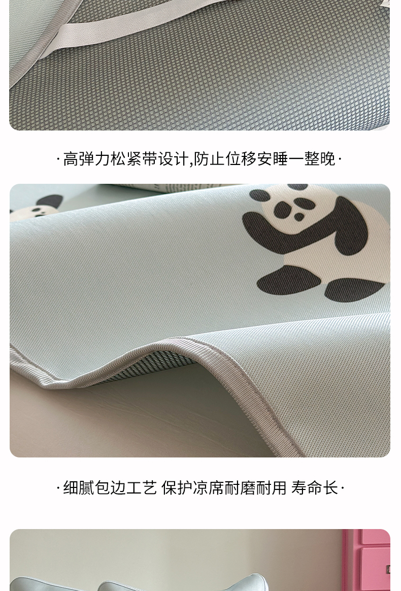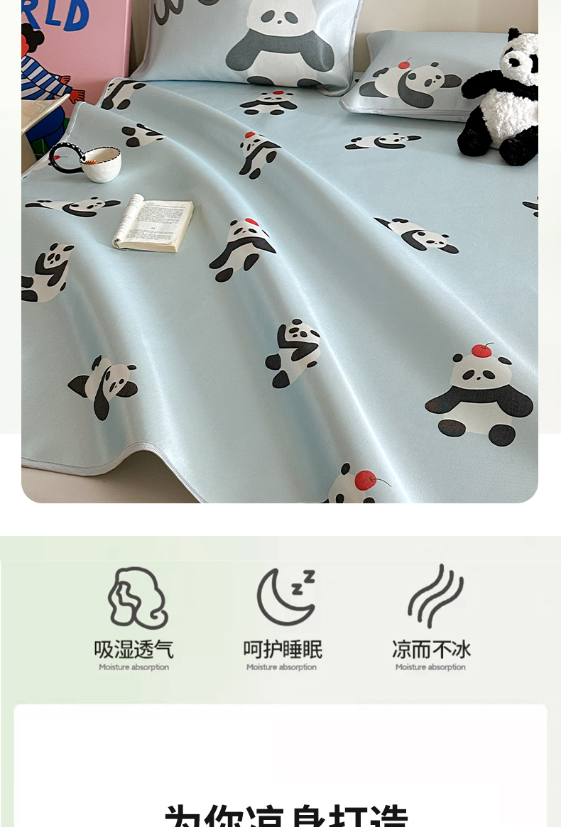 商品名称:萝莉家纺 2025新款升级900D加厚数码印花斜纹冰丝床席款凉席三件套 苹果熊猫粉