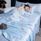 梦镜家纺 2025新款A类水洗真丝夏被四件套-腊肠狗 腊肠狗水蓝