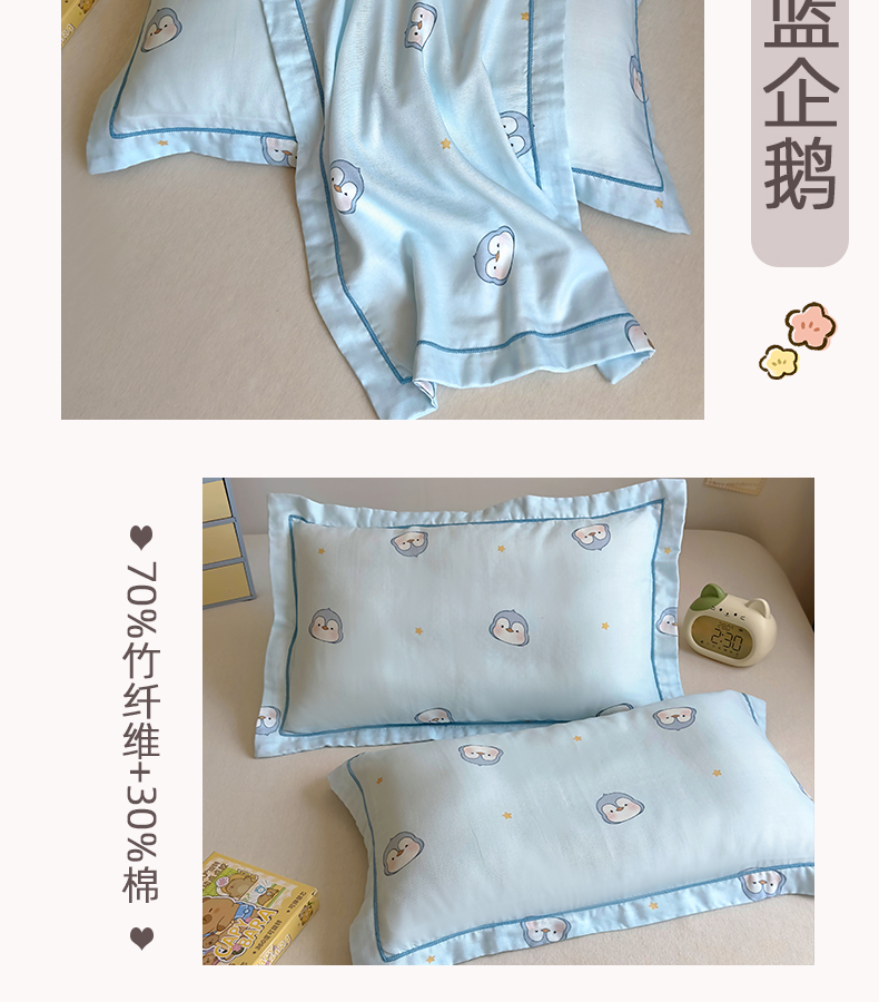 商品名称:百寐 2025新款竹纤维棉卡通儿童枕套30×50/35×55母婴A类宝宝枕套再生纤维 蓝企鹅