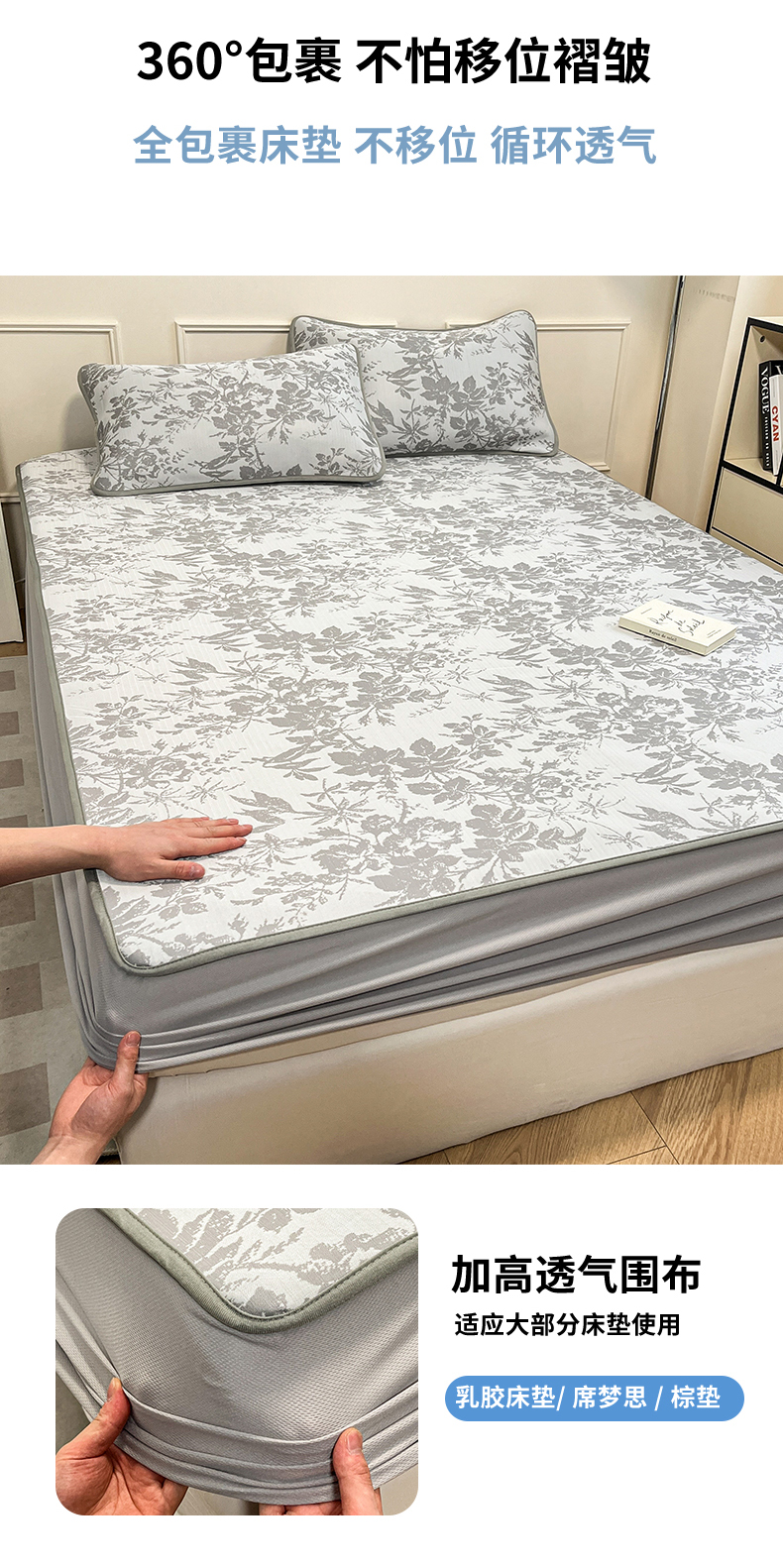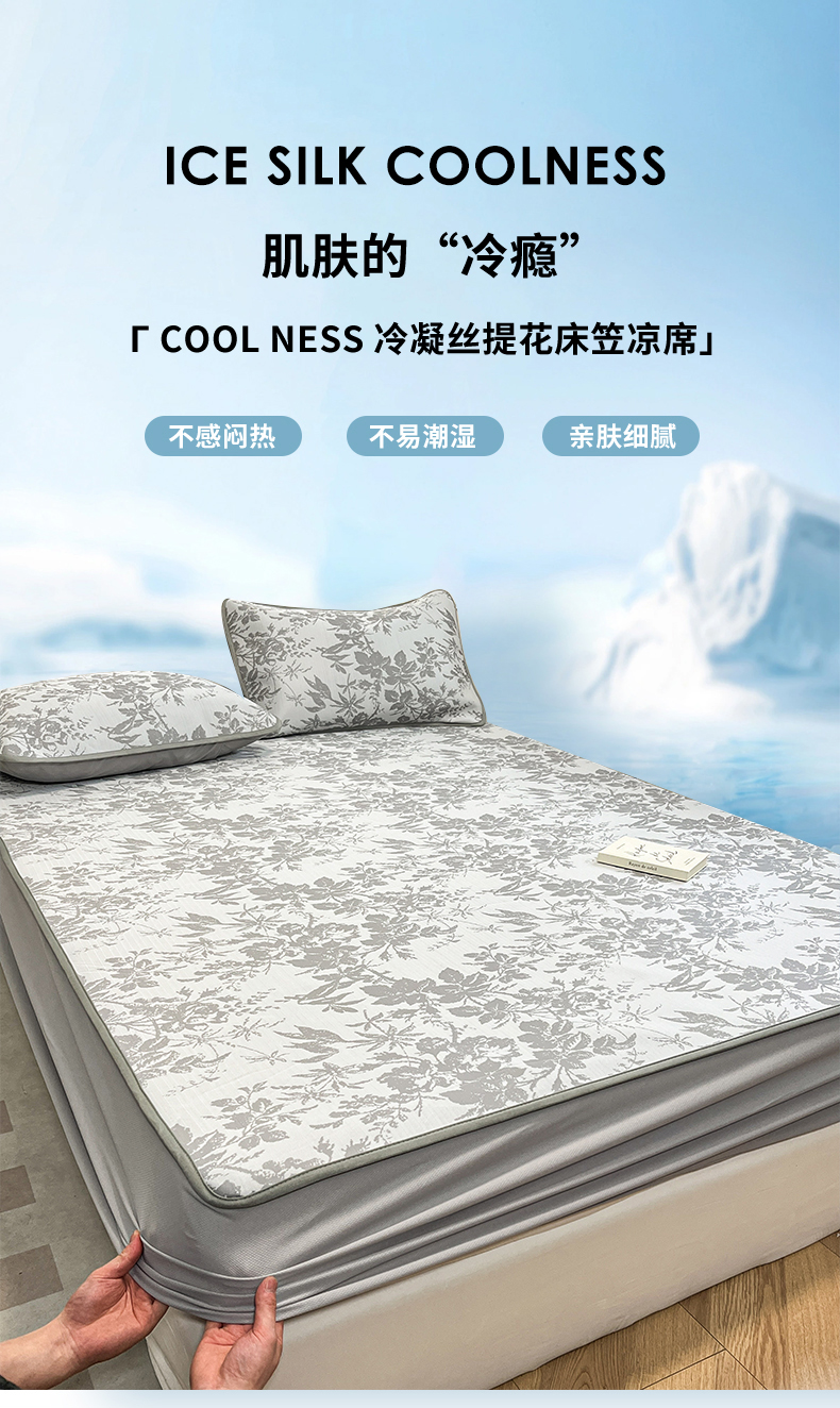 商品名称:宜代光年 2025新款冷凝丝可水洗提花凉感席-床笠款 床笠-凉感繁花-灰
