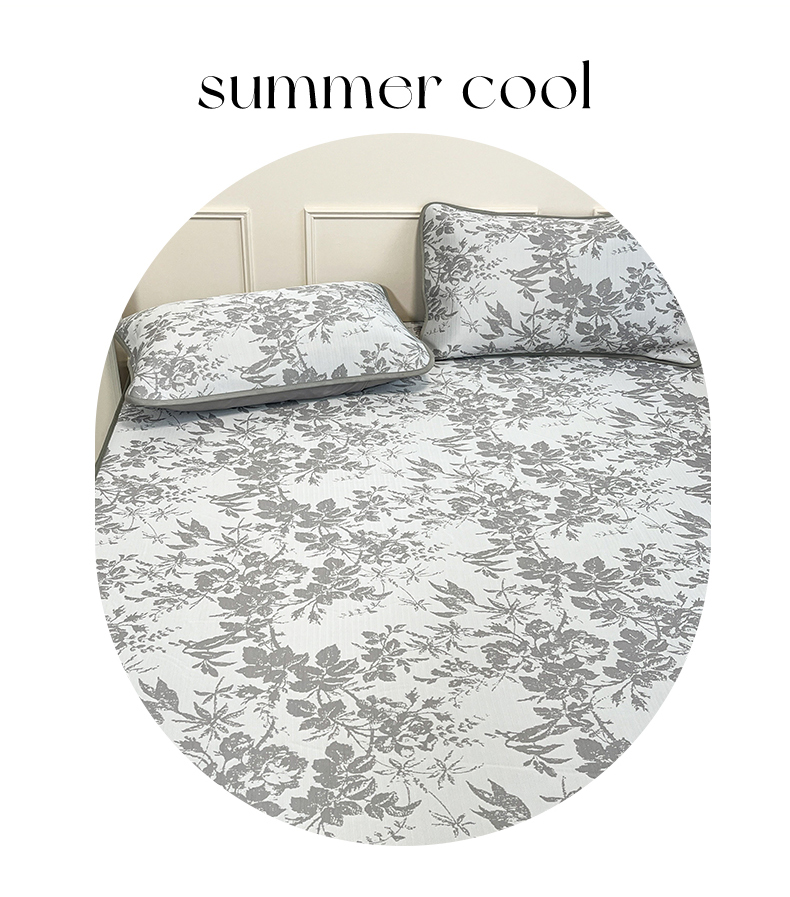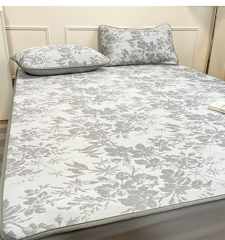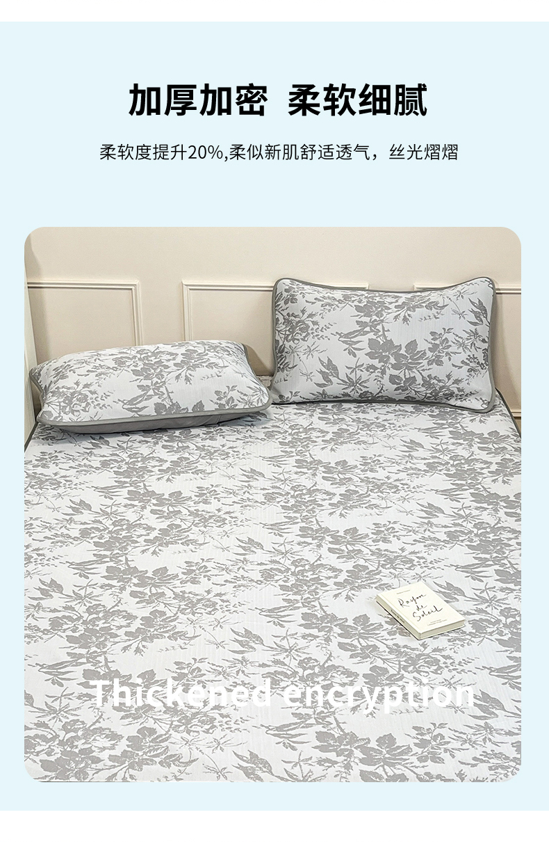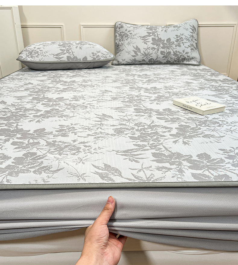宜代光年 2025新款冷凝丝可水洗提花凉感席-床笠款 床笠-凉感繁花-灰