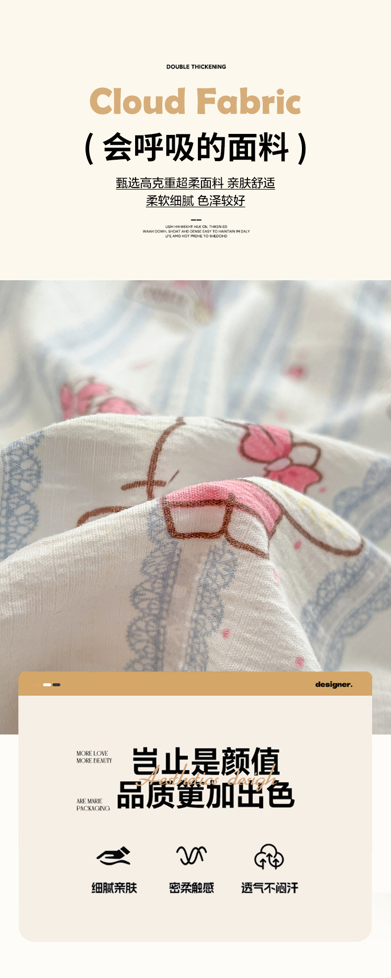 当前位置: 91家纺网 > 商品网购 > 床品套件 > 四件套 > 双层纱四件套 > 海岛哥哥 2025新款高克重木棉提花双层纱四件套-风格一 糖果小咪