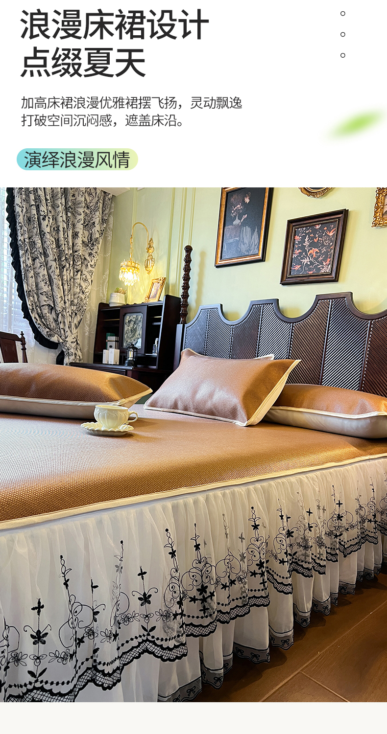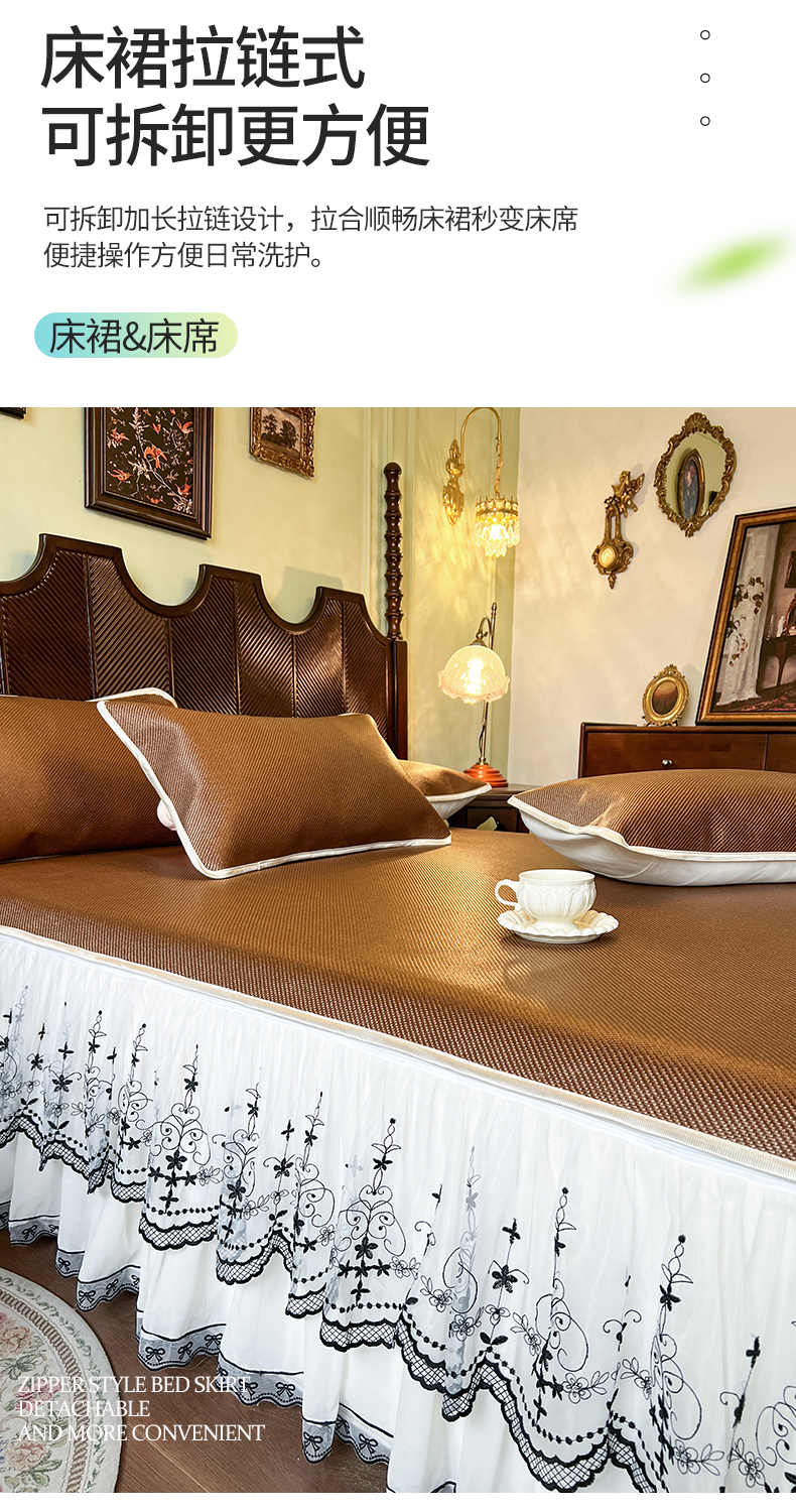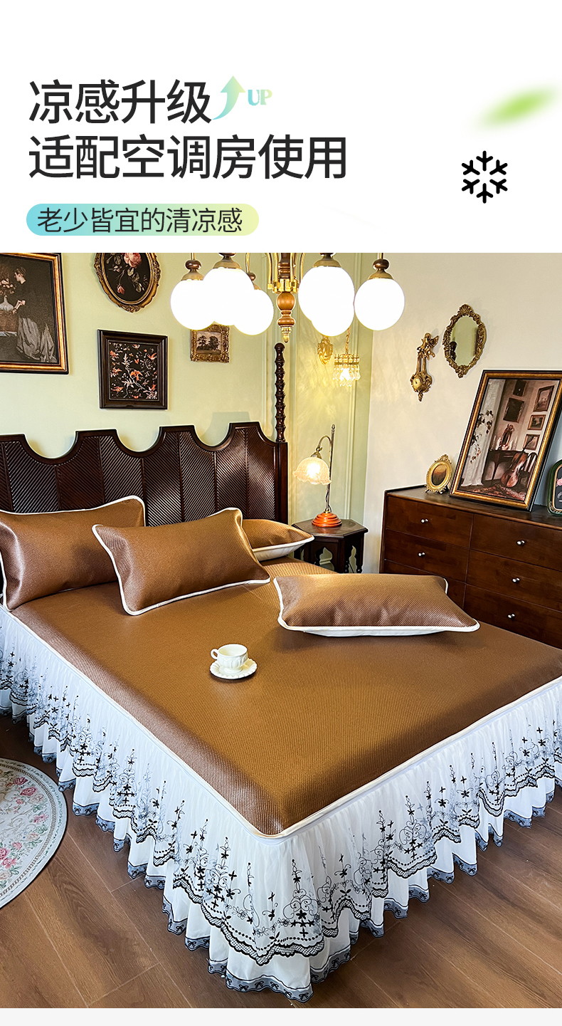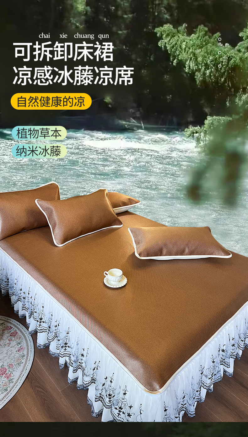 商品名称:网红馆(ck家纺) 2025新款可脱卸床裙款冰藤席-盛夏繁星 栗棕