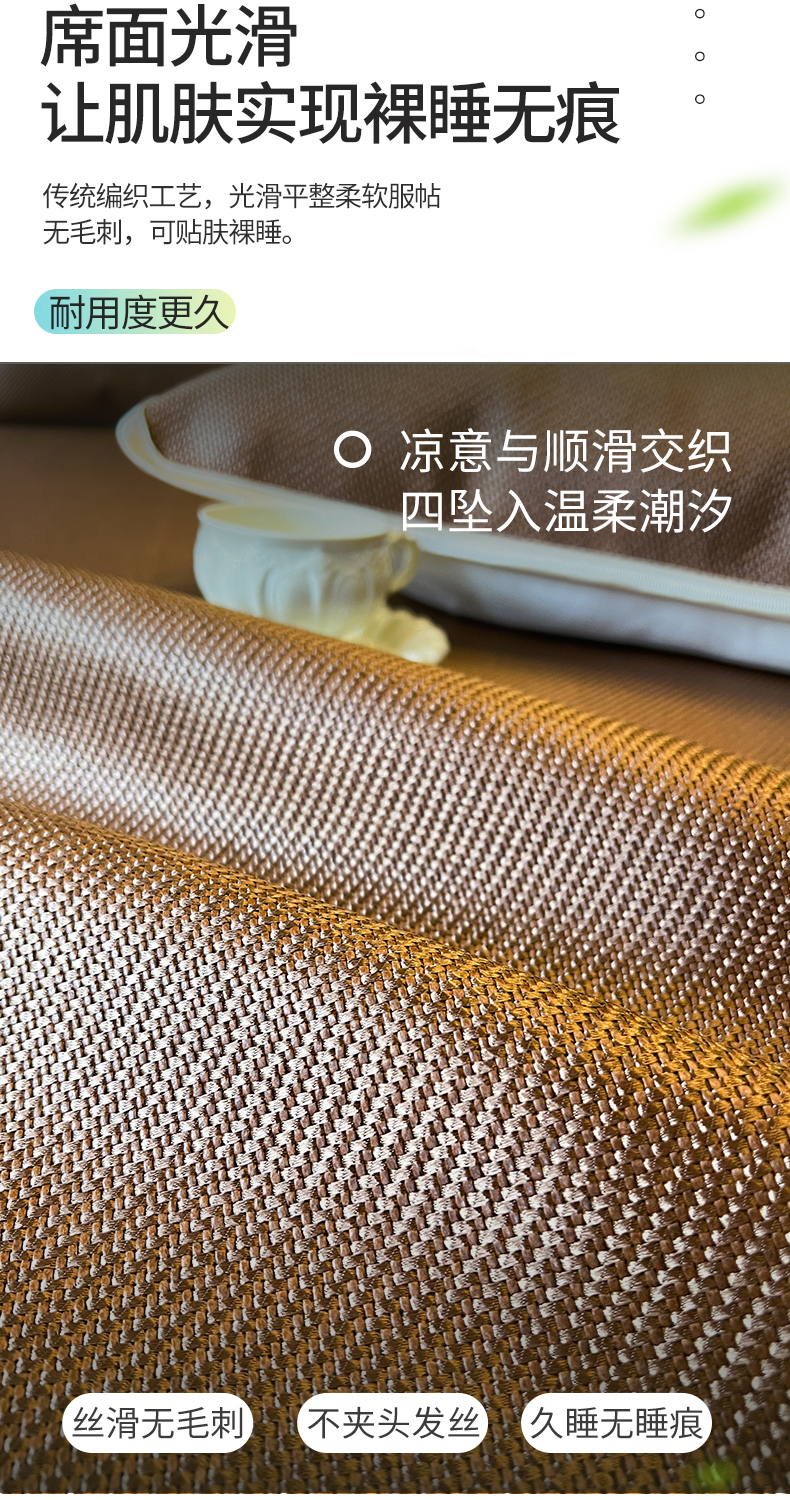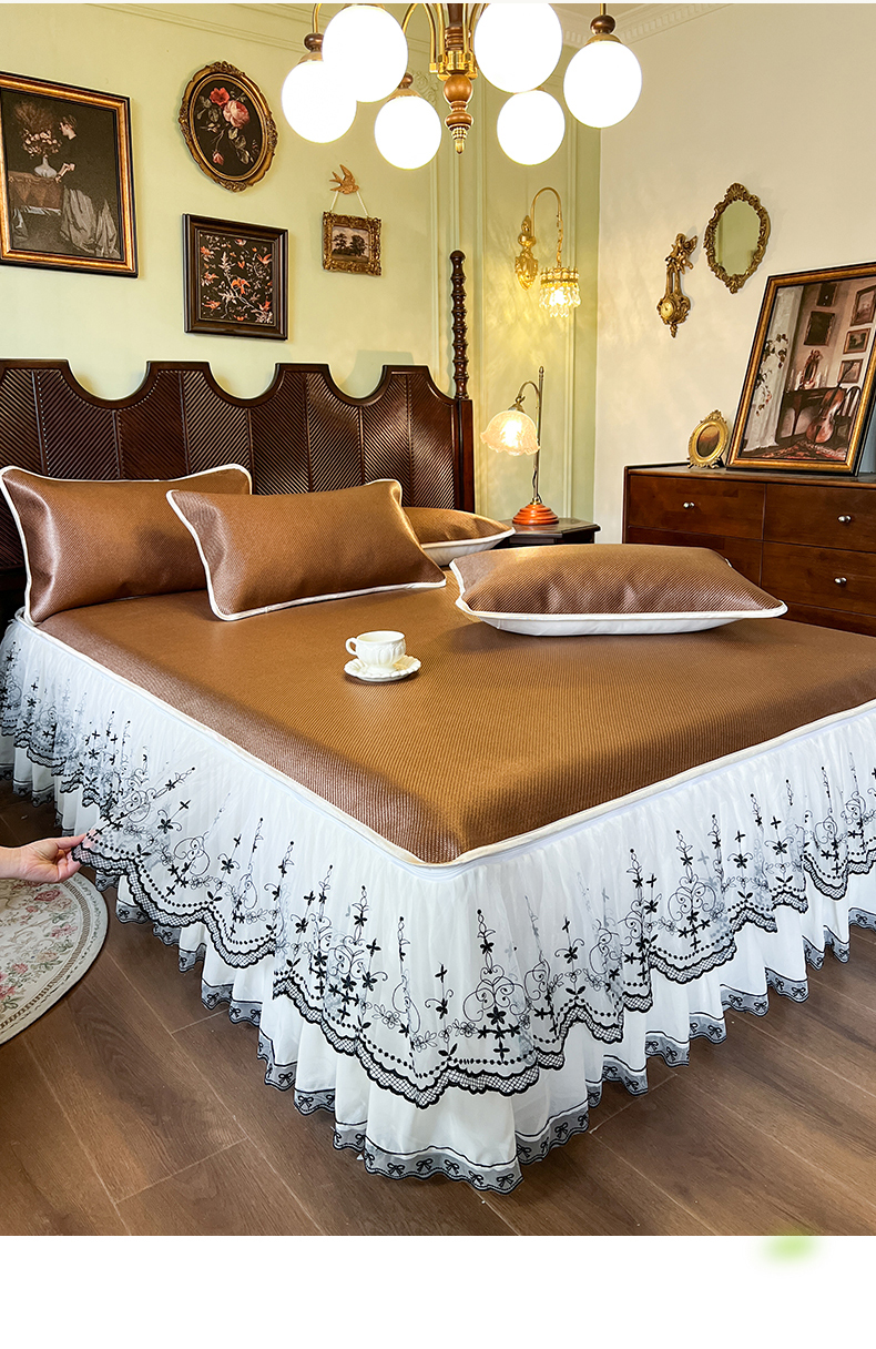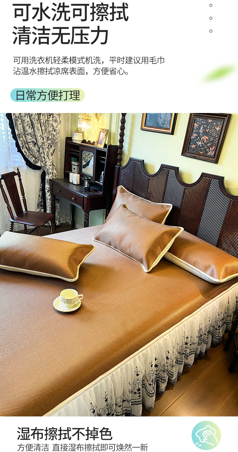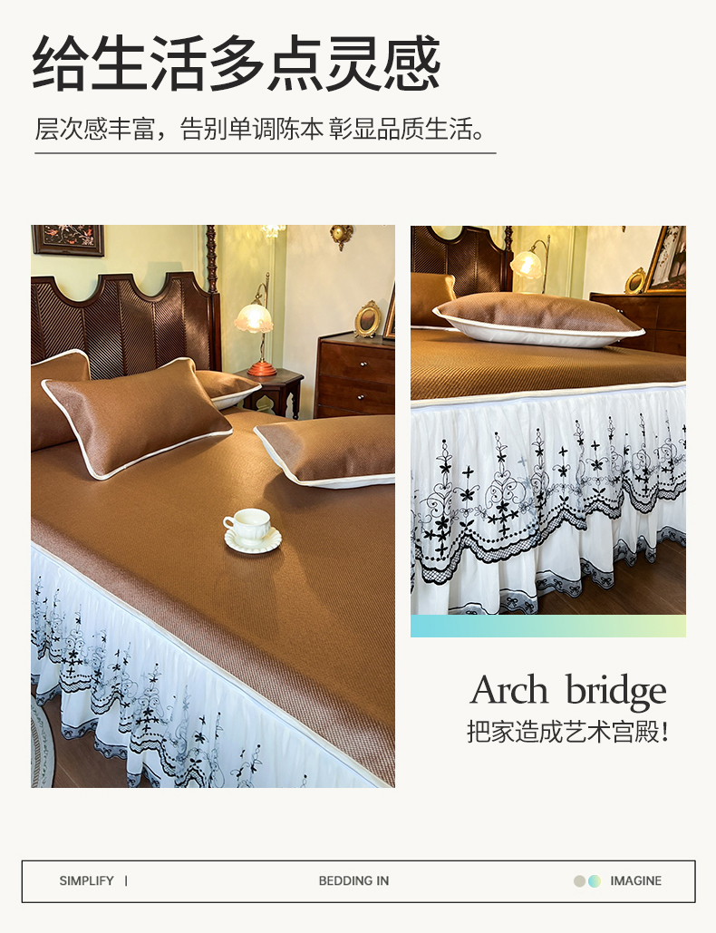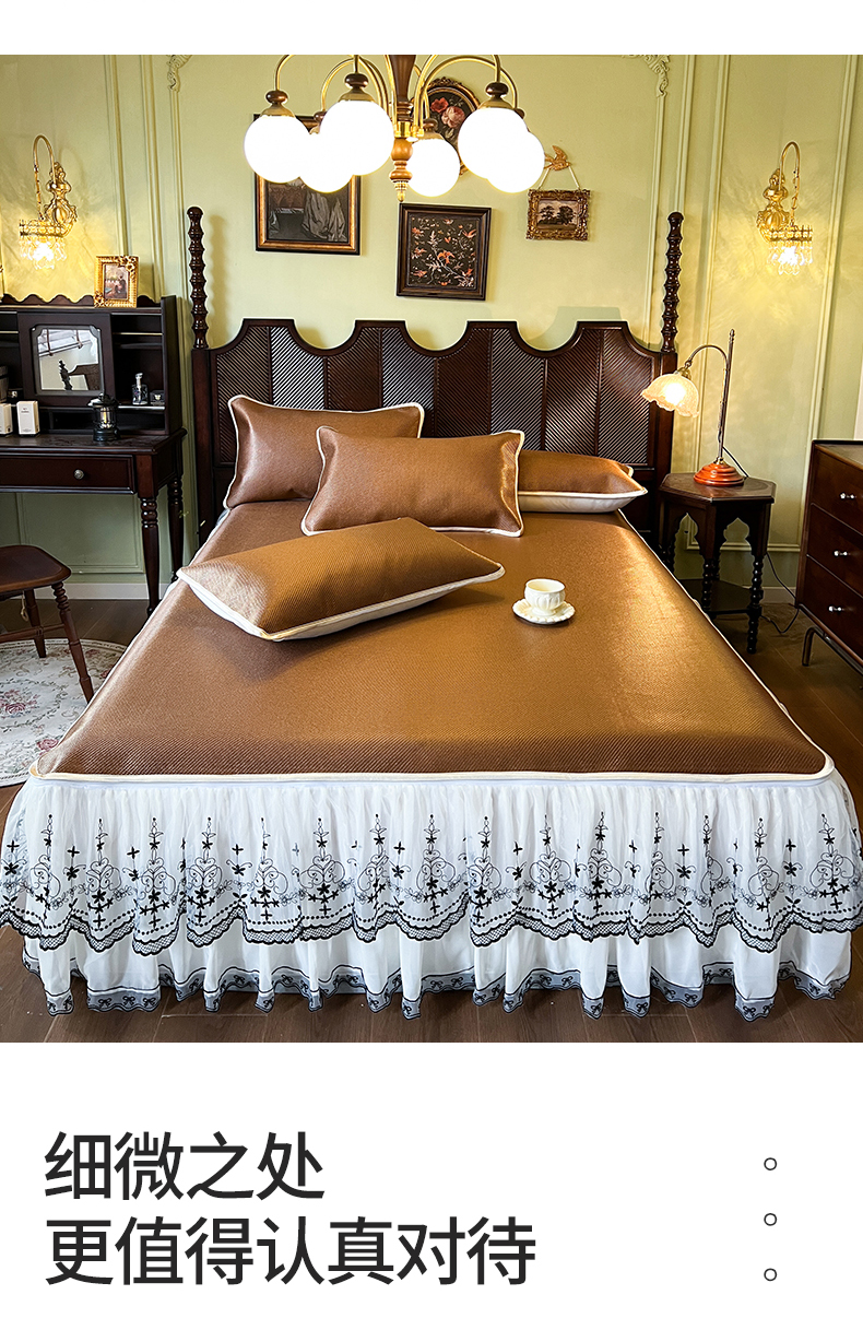 商品名称:网红馆(ck家纺) 2025新款可脱卸床裙款冰藤席-盛夏繁星 栗棕