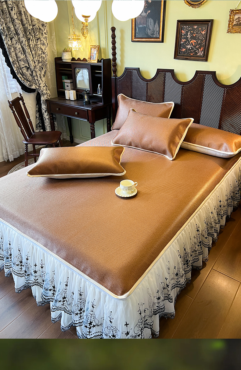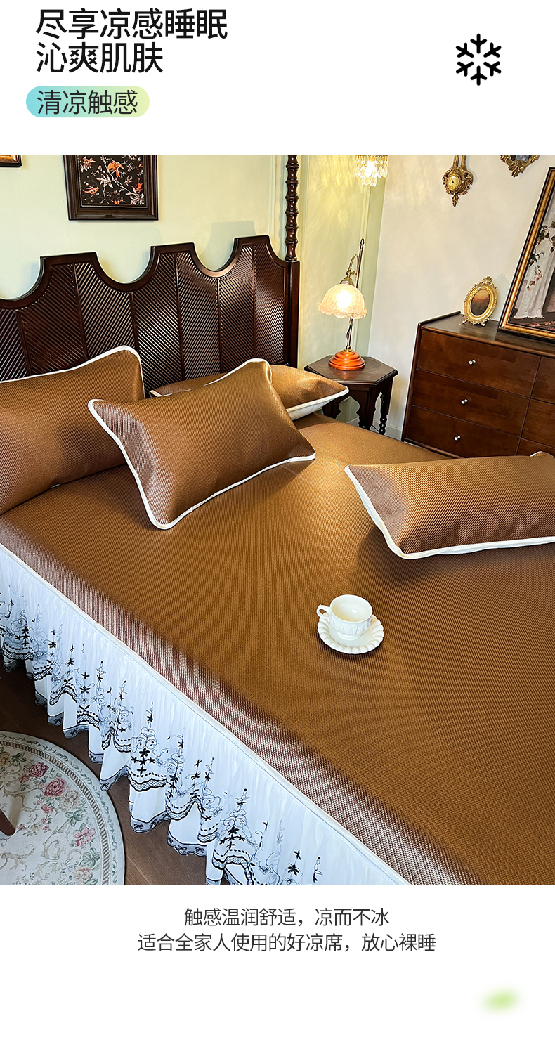网红馆(ck家纺) 2025新款可脱卸床裙款冰藤席-盛夏繁星 栗棕