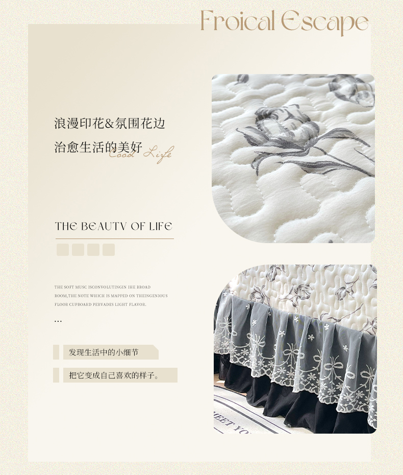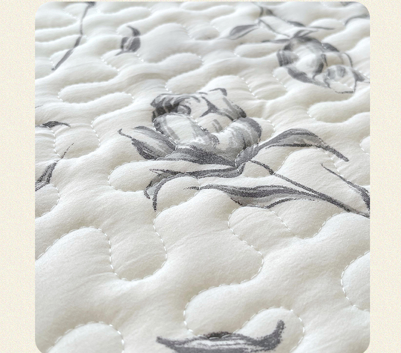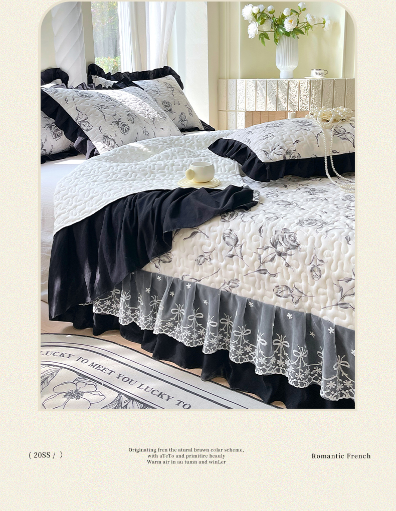 • 91家纺网 家纺一手货源 找家纺 雨彤家纺 2025年新款赫本风云朵水洗棉夹棉双层花边床盖 水墨玫瑰-赫本风