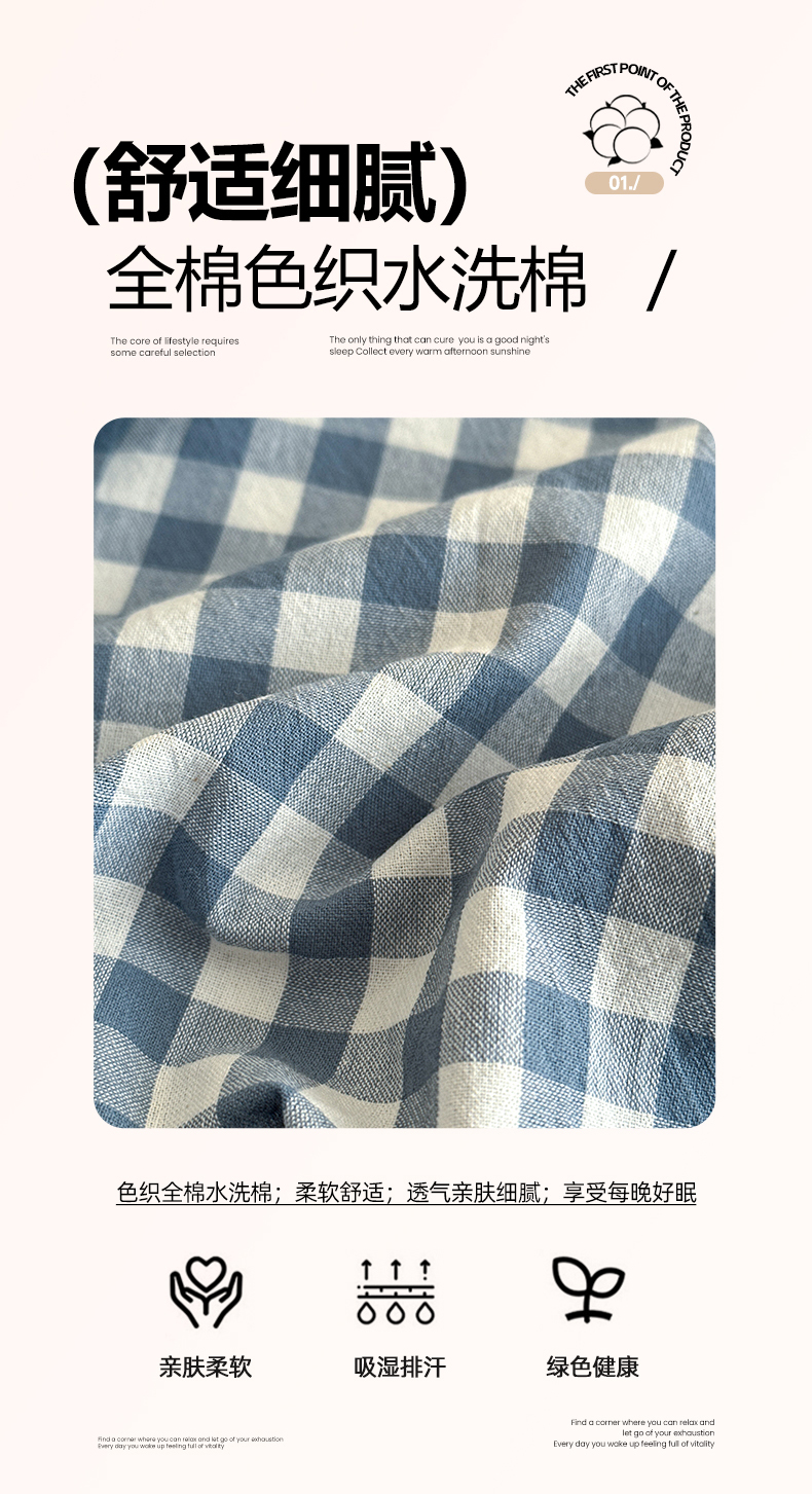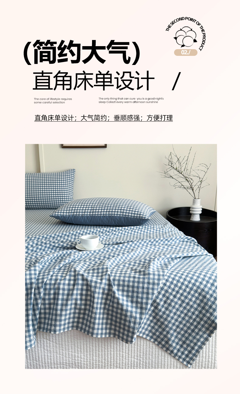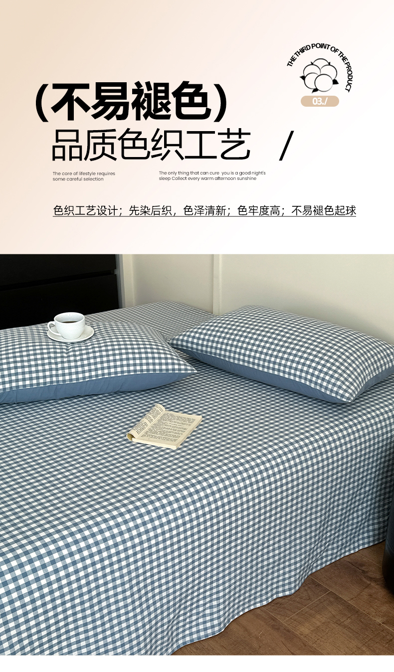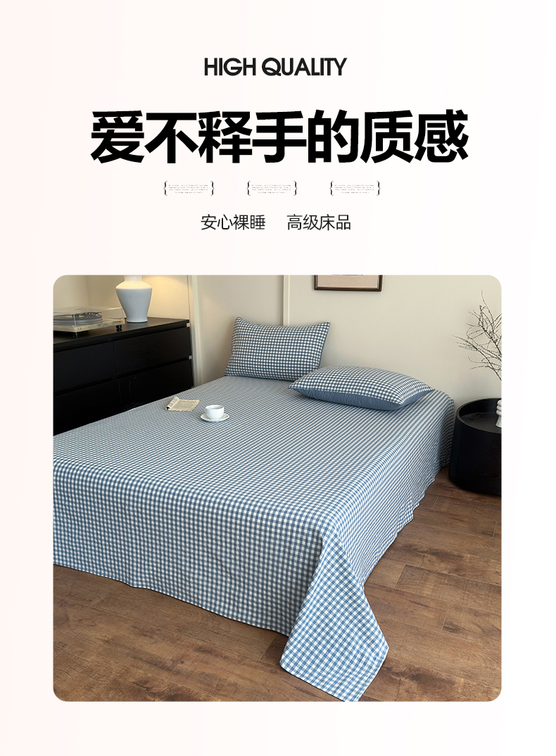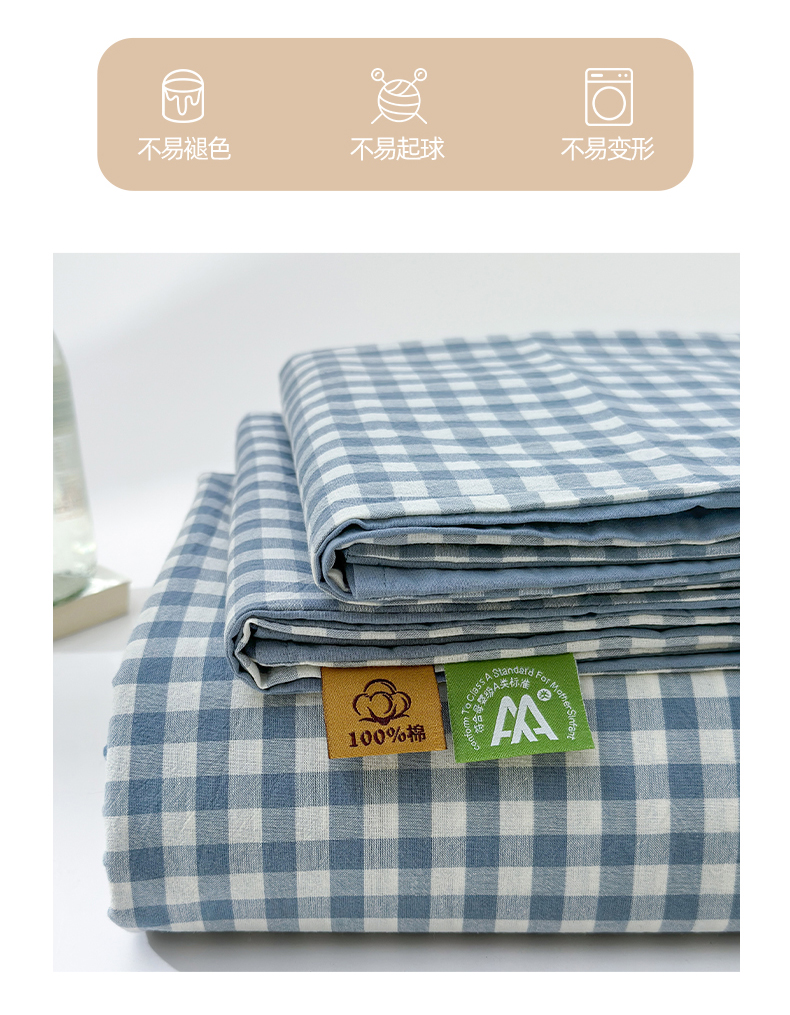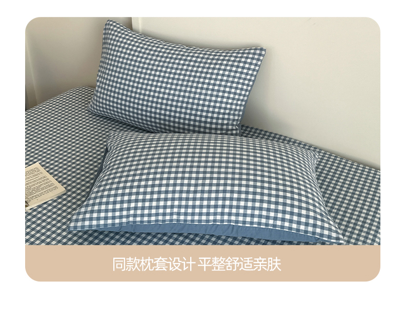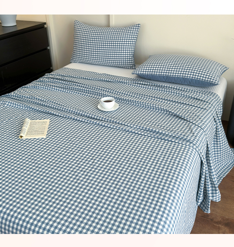 • 91家纺网 家纺一手货源 找家纺 吉象家纺 2025新款全棉色织水洗棉床单三件套 蓝小格