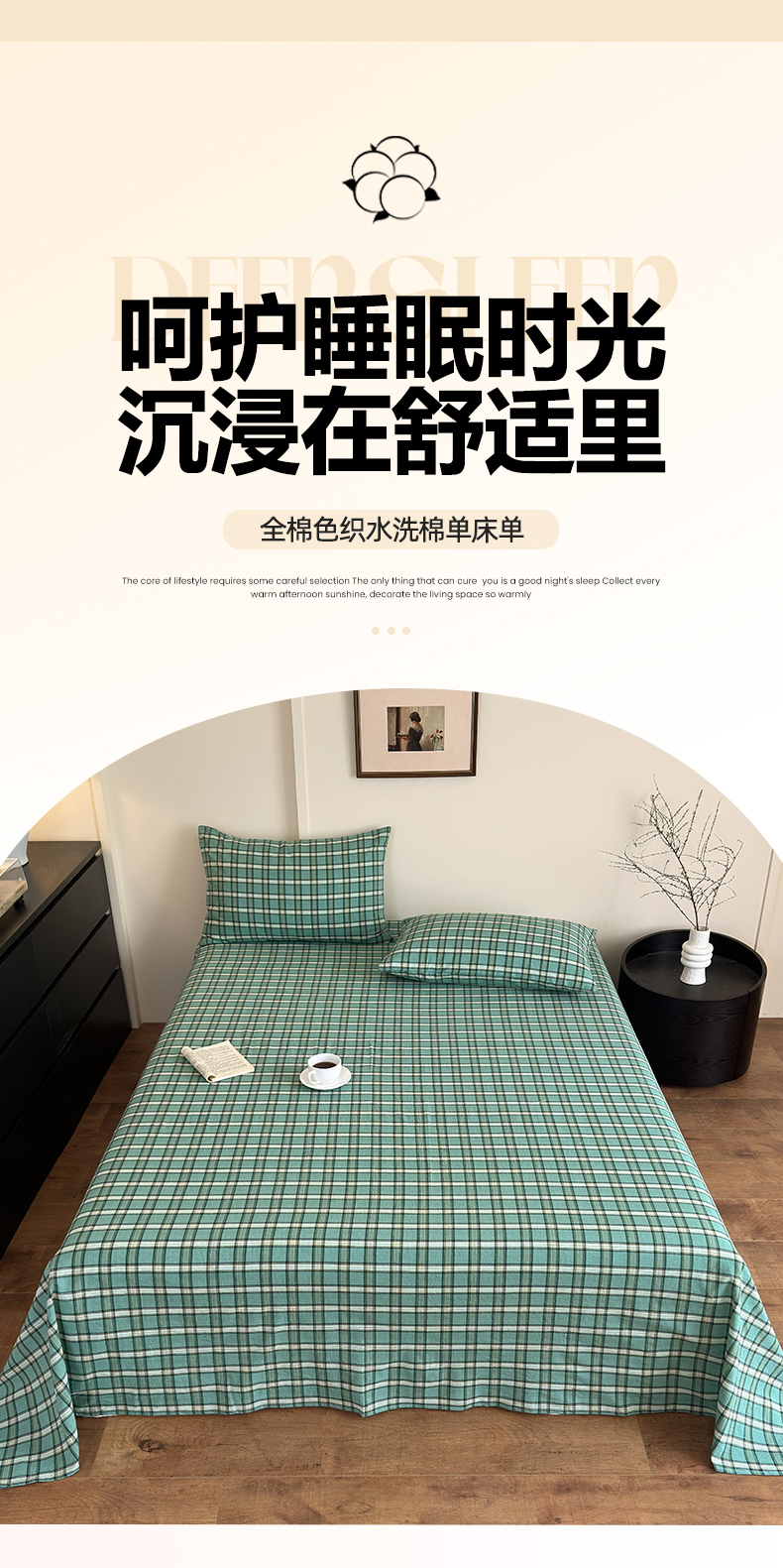 当前位置: 91家纺网 > 商品网购 > 床上用品 > 床单 > 吉象家纺 2025新款全棉色织水洗棉床单三件套 新春绿