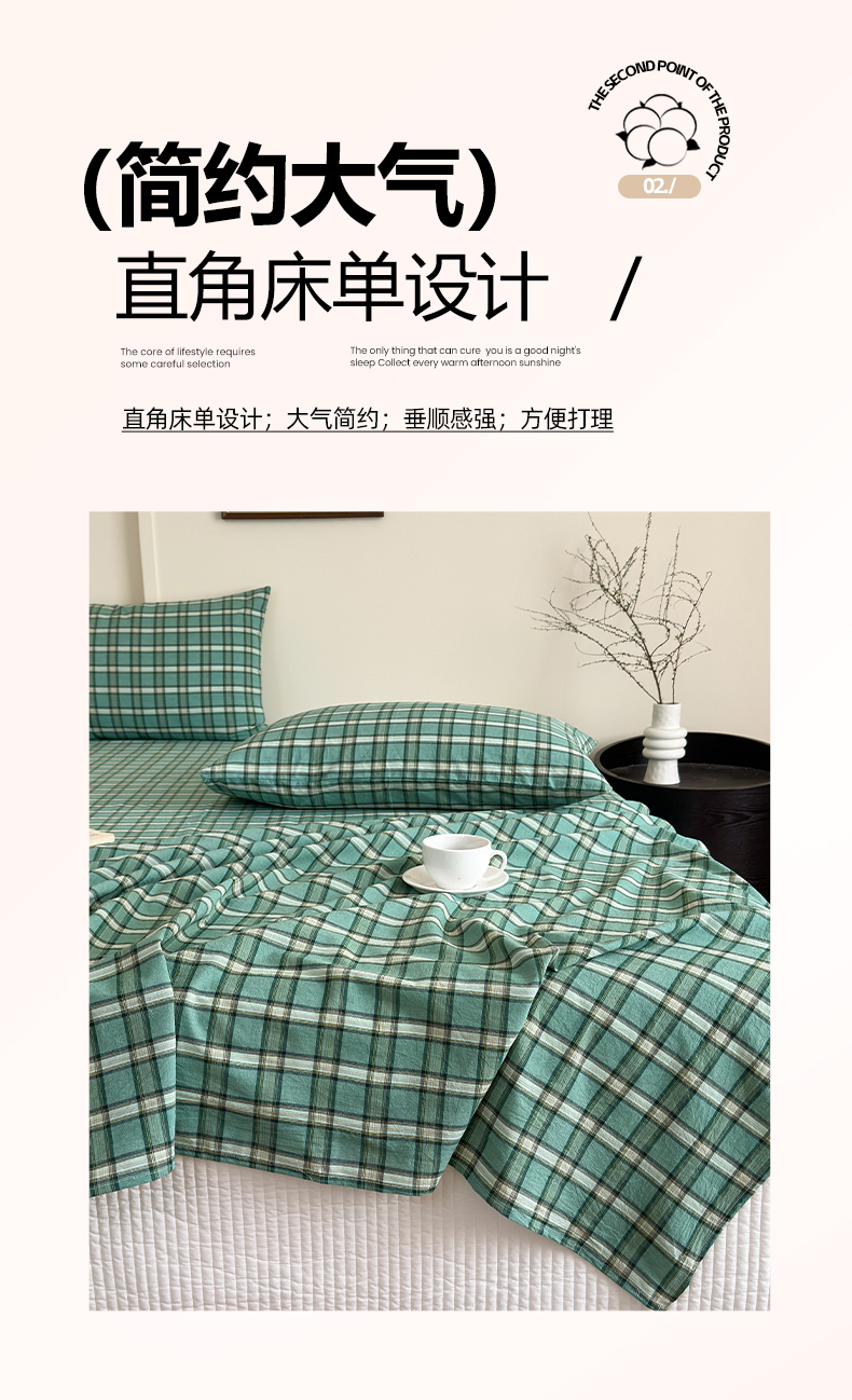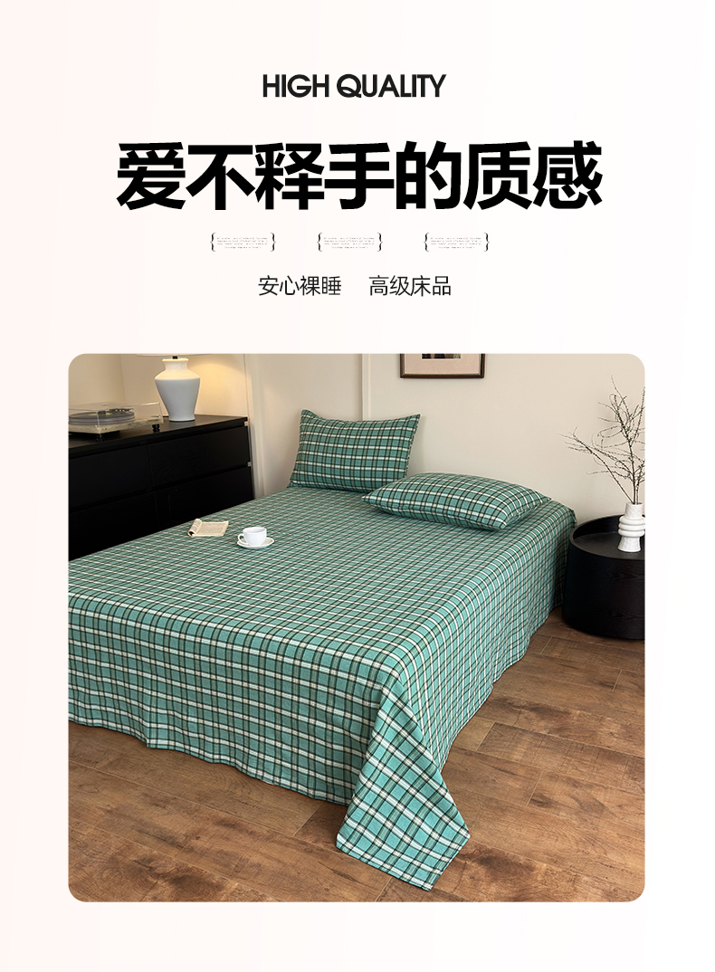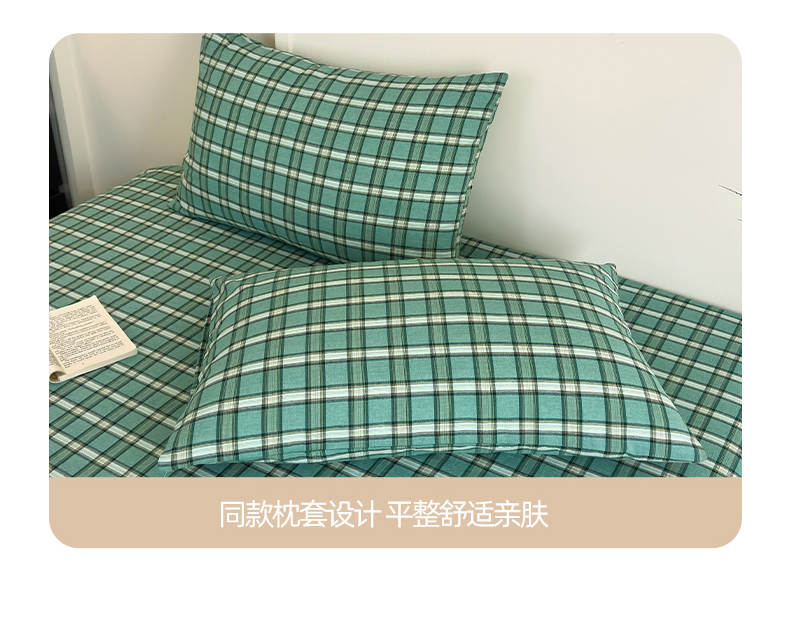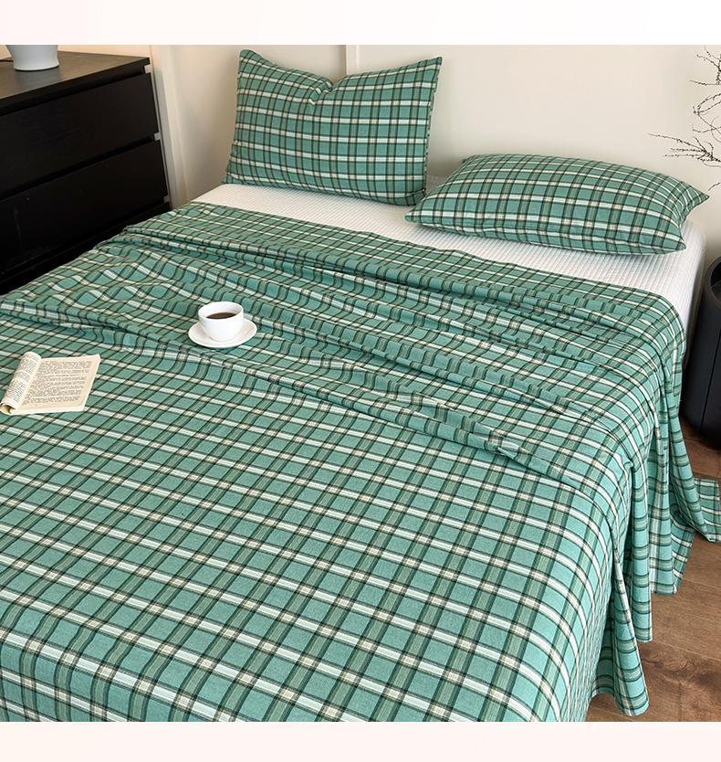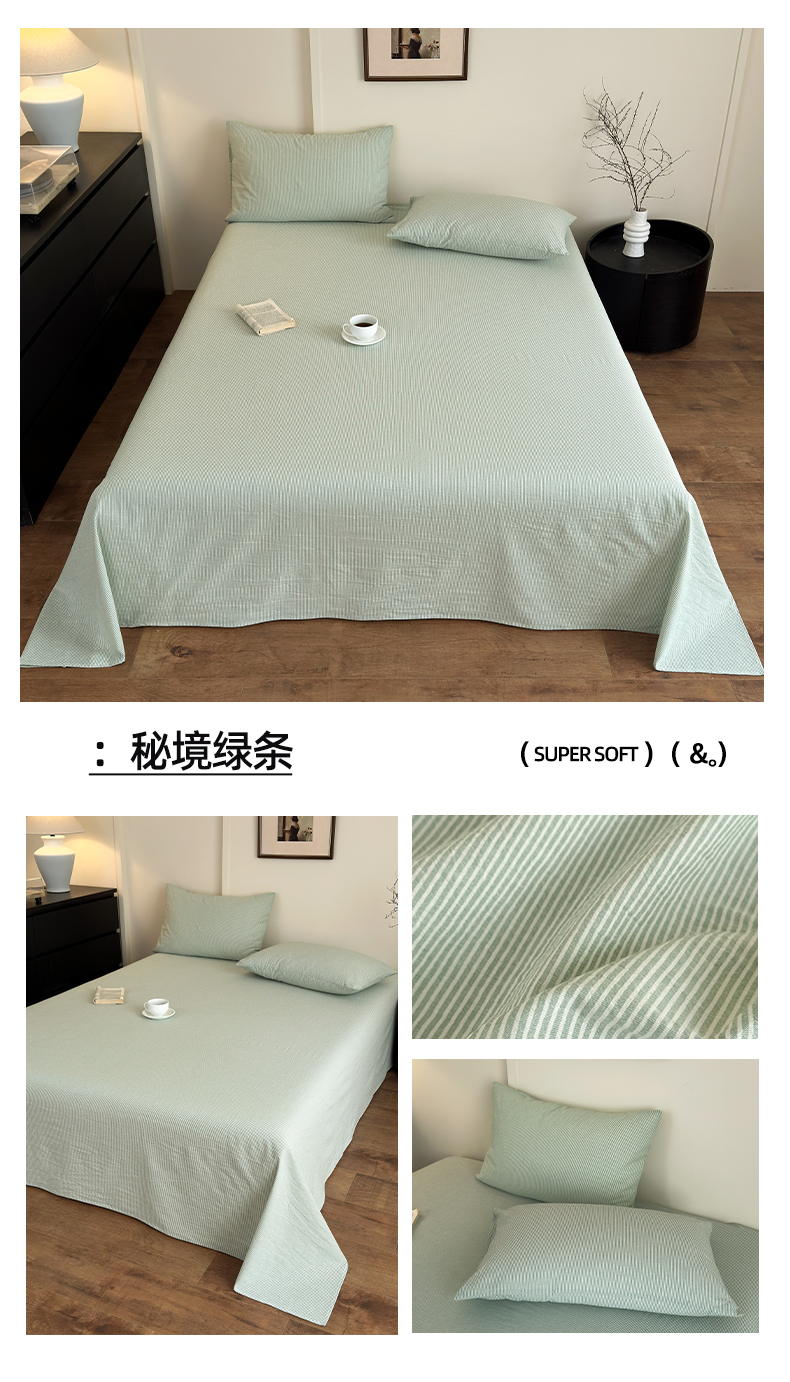 吉象家纺 2025新款全棉色织水洗棉床单三件套 新春绿