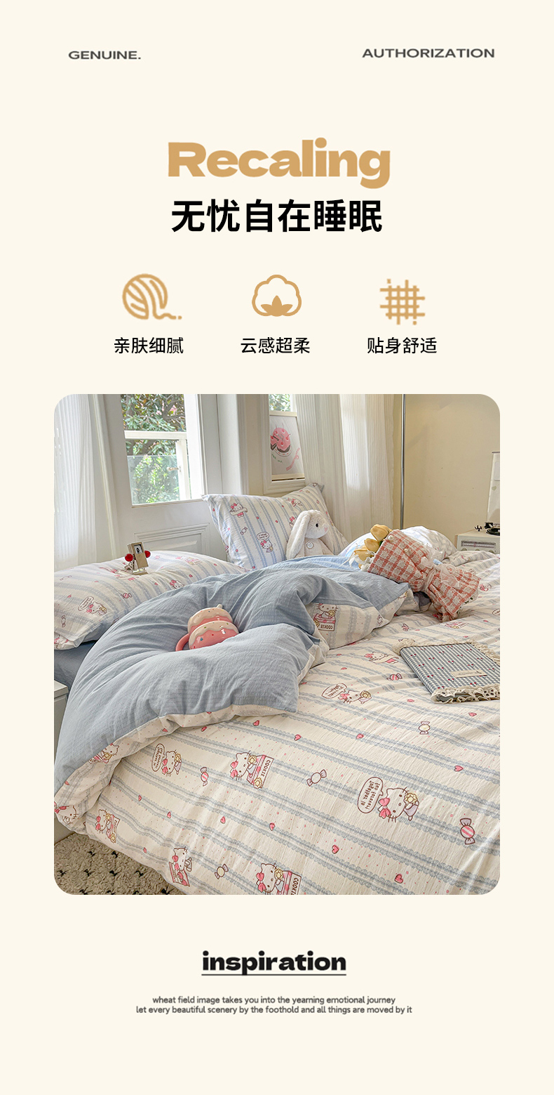 当前位置: 91家纺网 > 商品网购 > 床品套件 > 四件套 > 双层纱四件套 > 海岛哥哥 2025新款高克重木棉提花双层纱四件套-风格二 糖果小咪