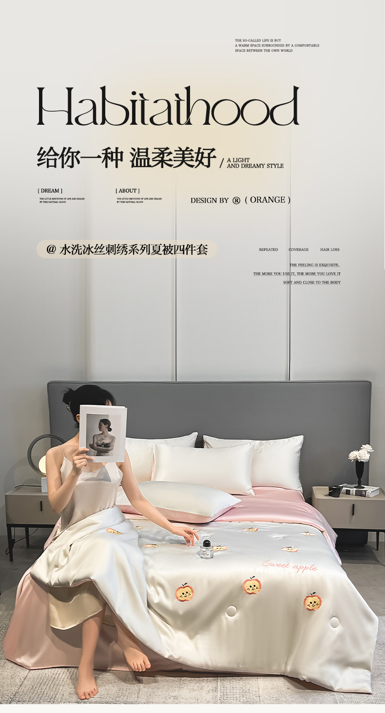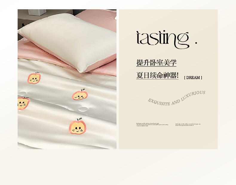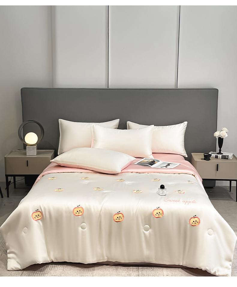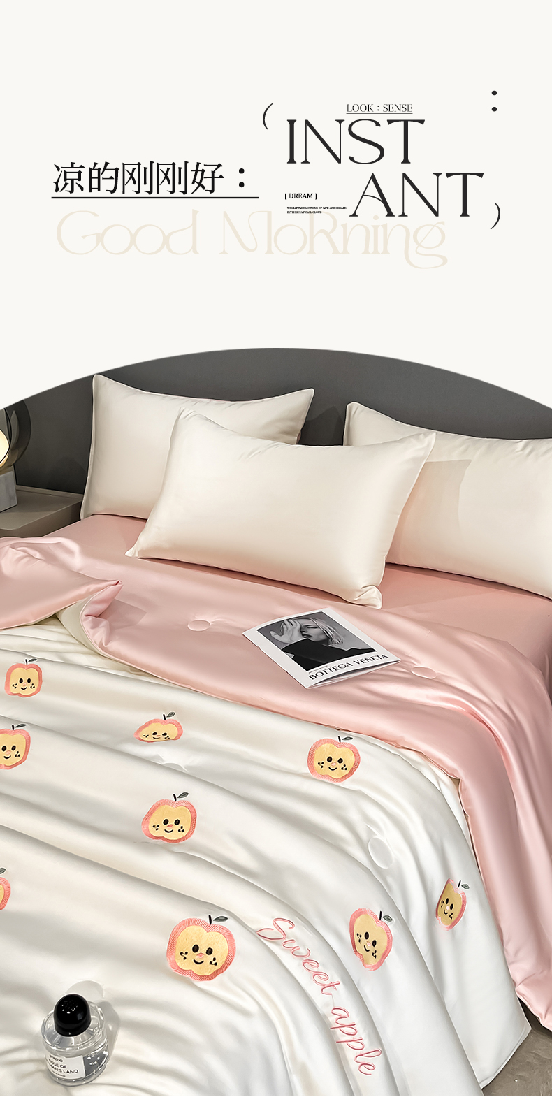 当前位置: 91家纺网 > 商品网购 > 床品套件 > 四件套 > 夏被四件套 > 如一 2025新款精绣系列水洗冰丝夏被四件套 小苹果-奶白粉