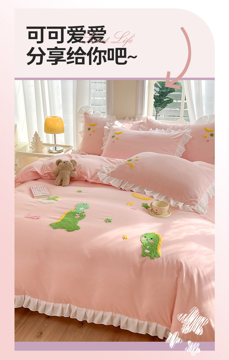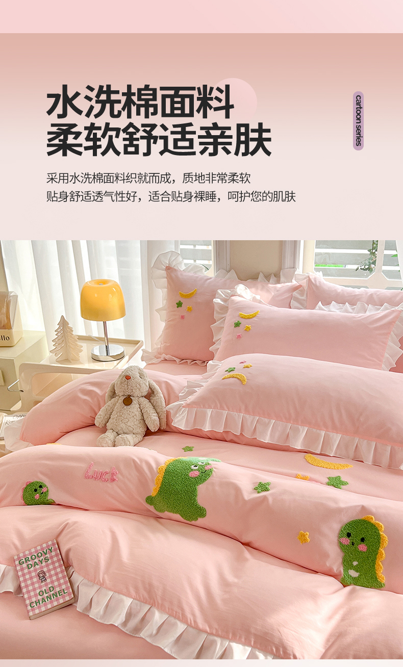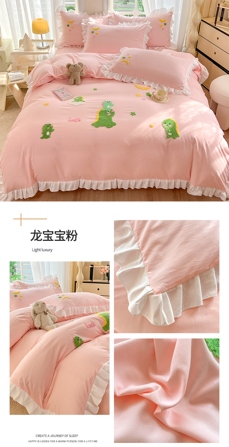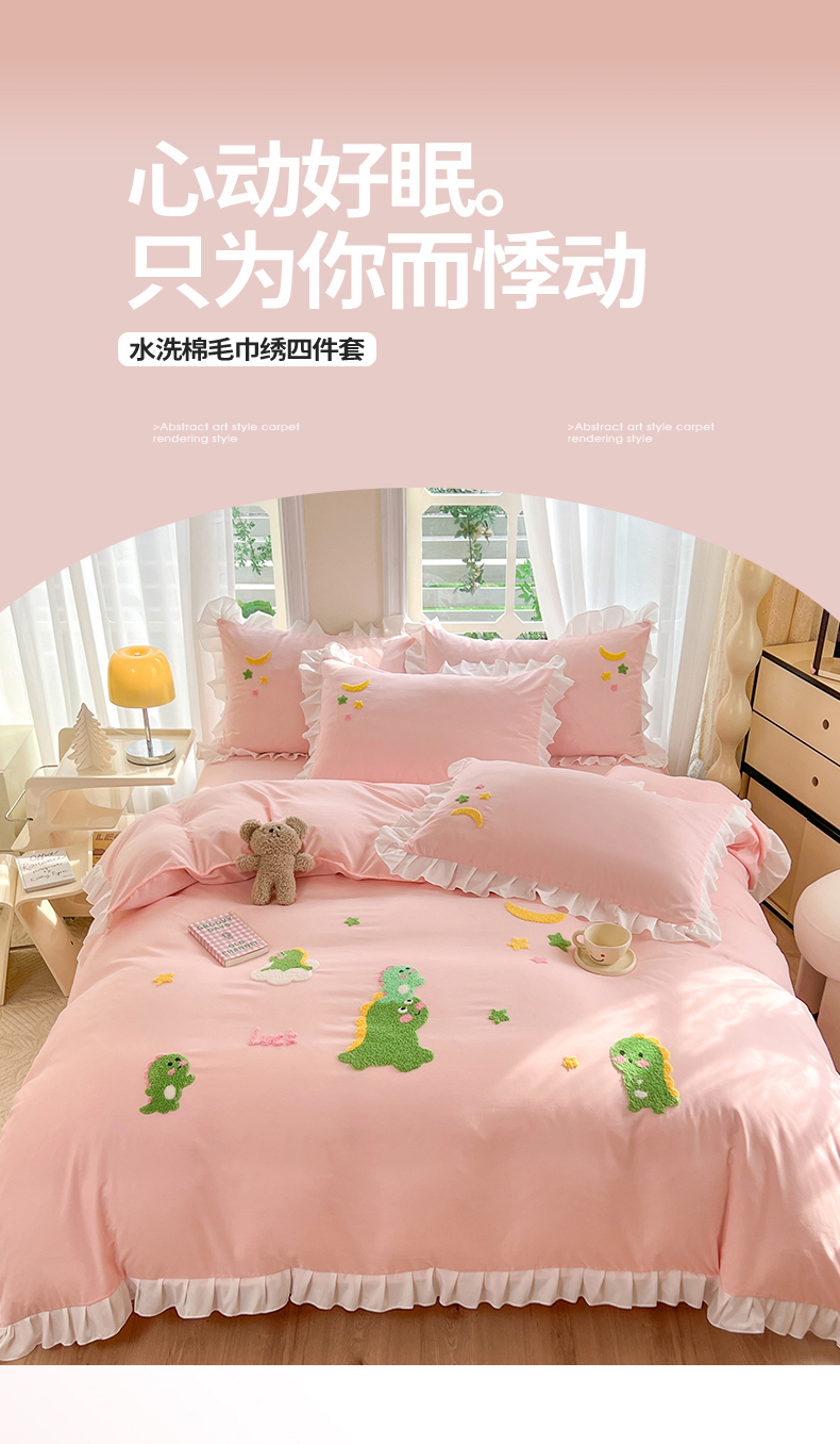 当前位置: 91家纺网 > 商品网购 > 床品套件 > 四件套 > 水洗棉四件套 > 雨菲家纺 2025新款水洗棉毛巾绣四件套-龙宝宝 龙宝宝粉