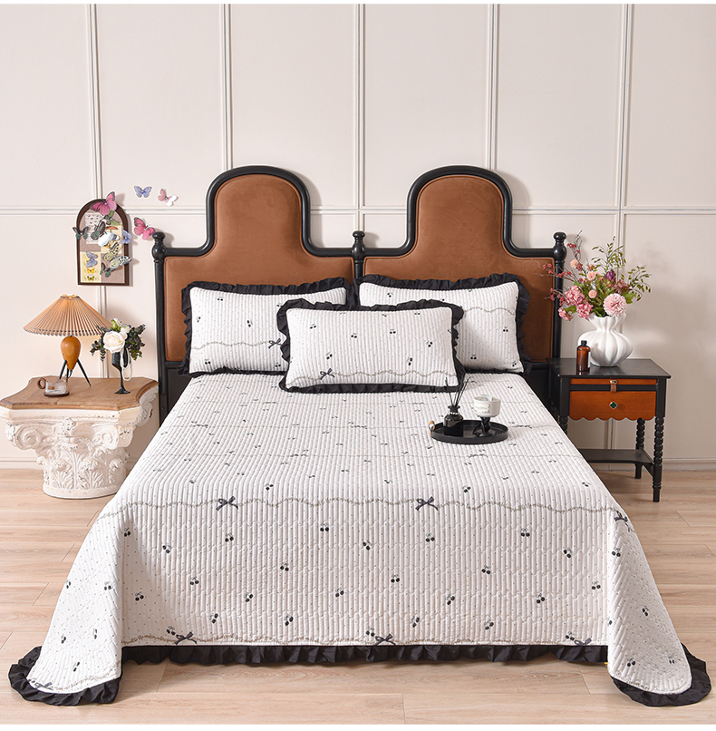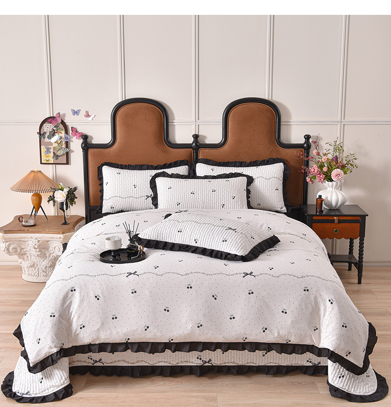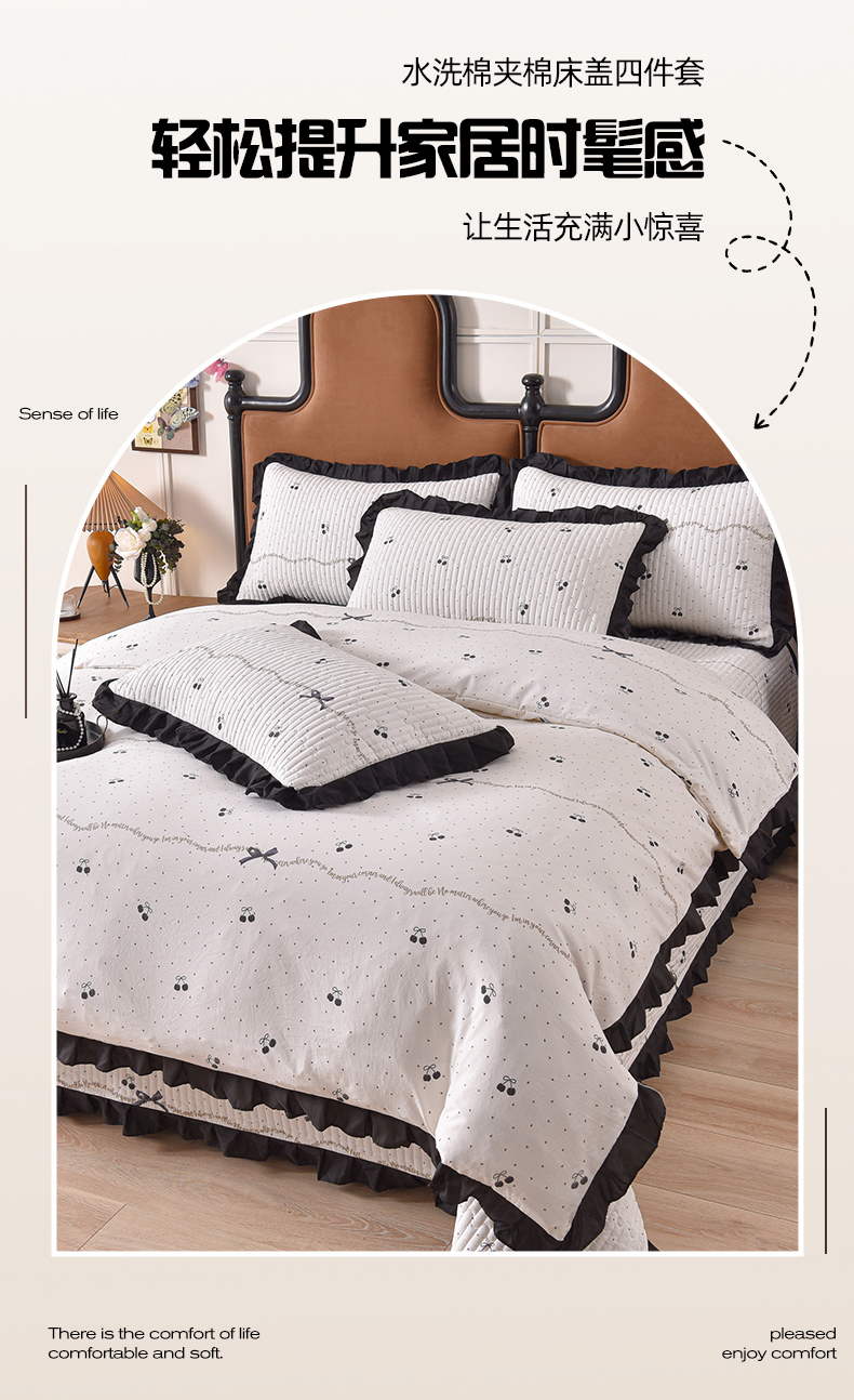 (总)同田家纺 2024新款泡泡棉印花蕾丝工艺四件套,萱花,樱桃,郁金香,竹子熊猫,朵朵花开,黑樱桃,花花小兔,花园,可爱猫,浪漫花季,绿林,莫奈花园,硕果累累,苏菲庄园