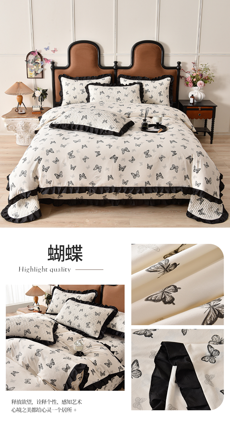 (总)同田2025新款床盖夏被四件套,丁香紫,黑蝴蝶,腊肠小狗,梦幻粉,奶白,天空蓝