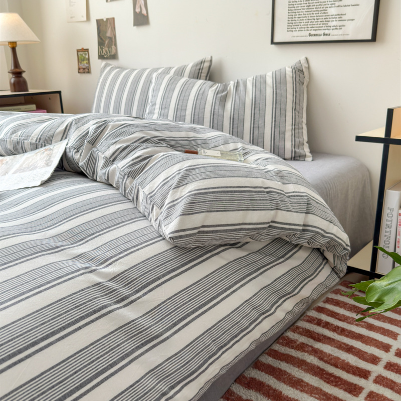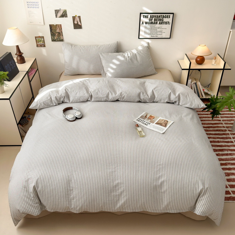 当前位置: 91家纺网 > 商品网购 > 床品套件 > 四件套 > 全棉普通四件套 > 良品汇馆 2025新款日式无印全棉纯棉水洗棉四件套良品条纹床品套件纯棉简约件套床单被套 灰咖细条