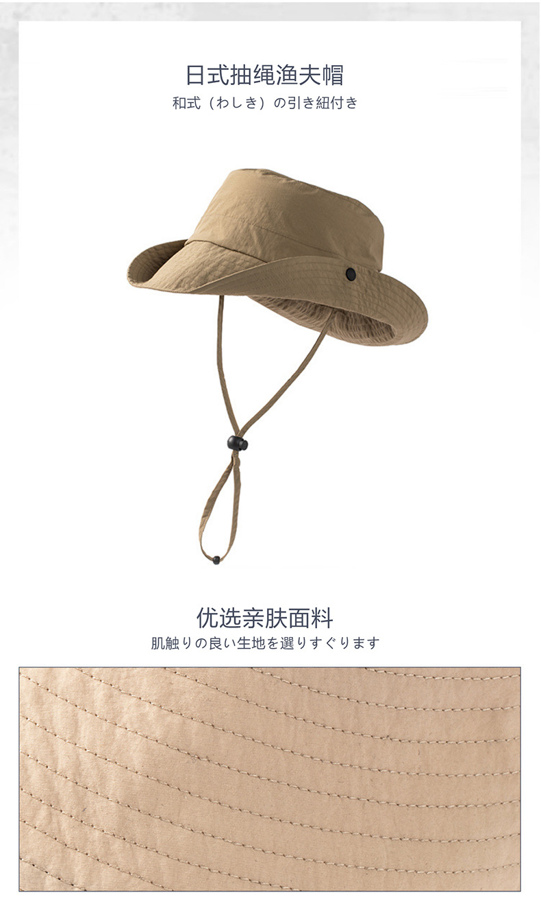 良品汇馆 2025新款日式无印速干抽绳渔夫帽良品遮阳夏季男女防晒薄钓鱼户外透气帽子 卡其色