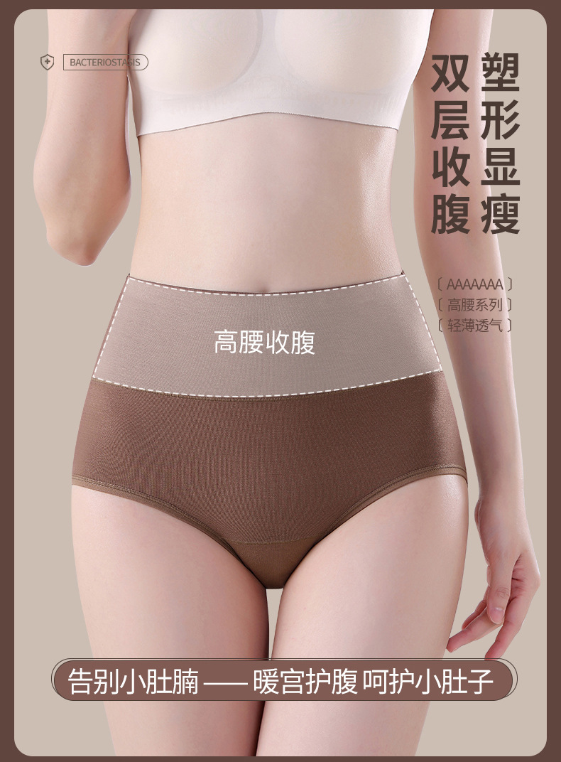 商品名称:良品汇馆 2025新款日式无印高腰莫代尔内裤良品轻薄收腹纯色女士内裤无痕全棉纯棉裆超柔 浅咖