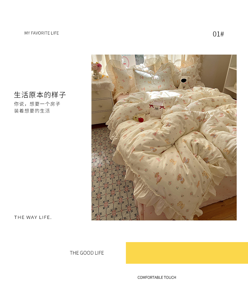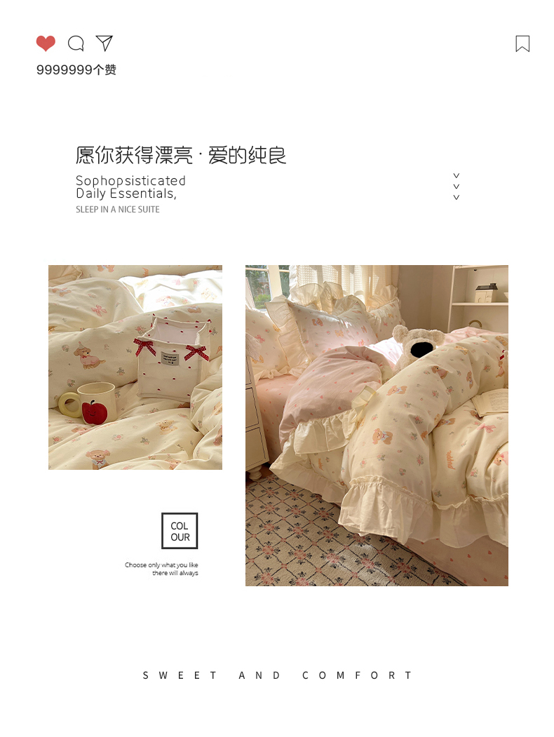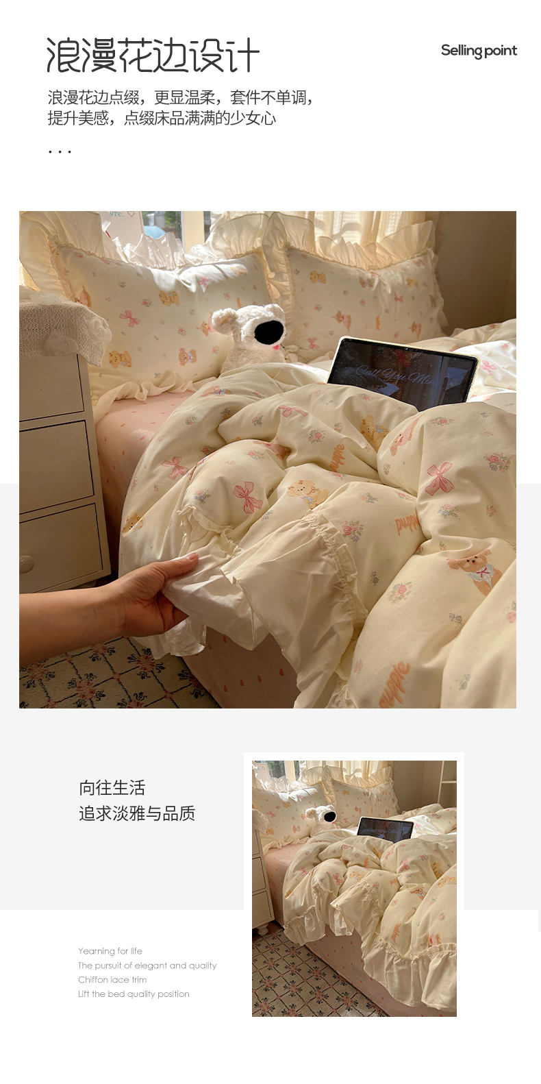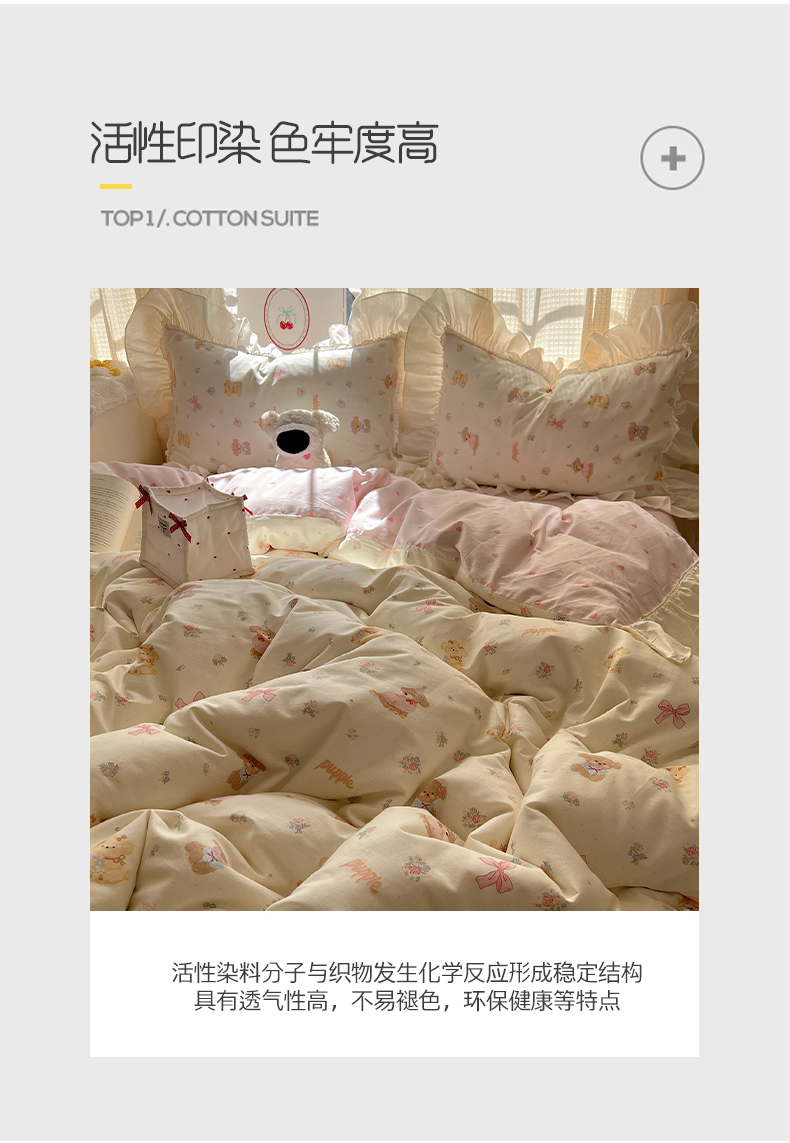 商品名称:瑞莱 2025新款全棉韩版花边印花四件套 粉结帕博