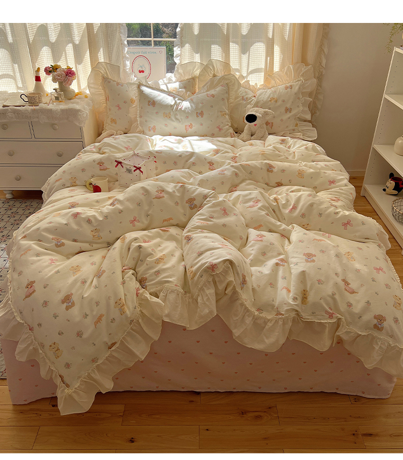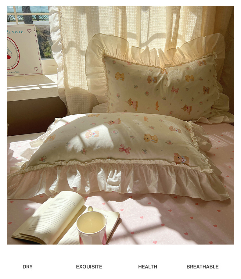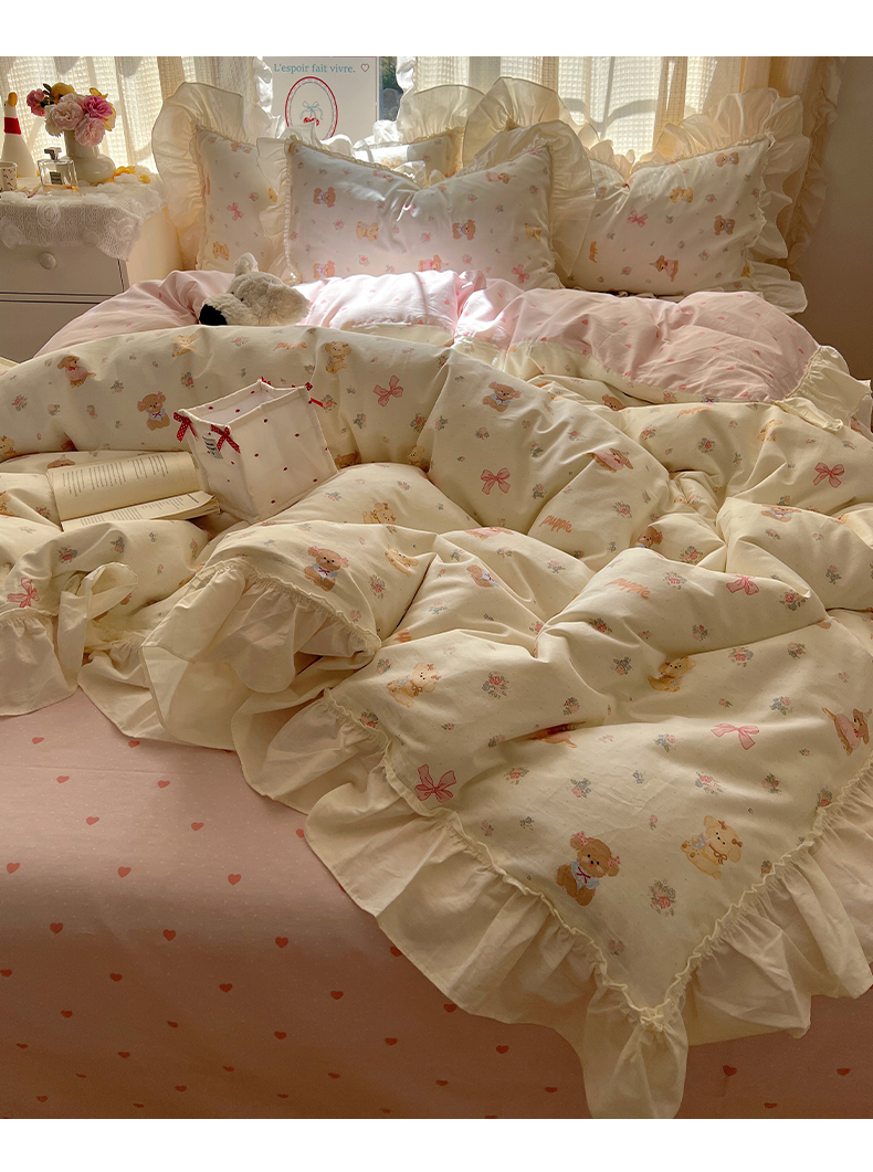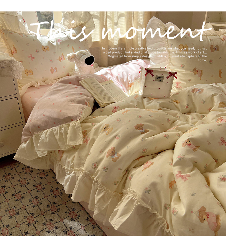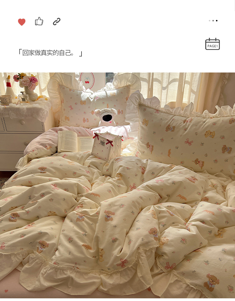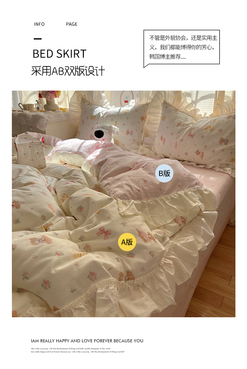 瑞莱 2025新款全棉韩版花边印花四件套 粉结帕博