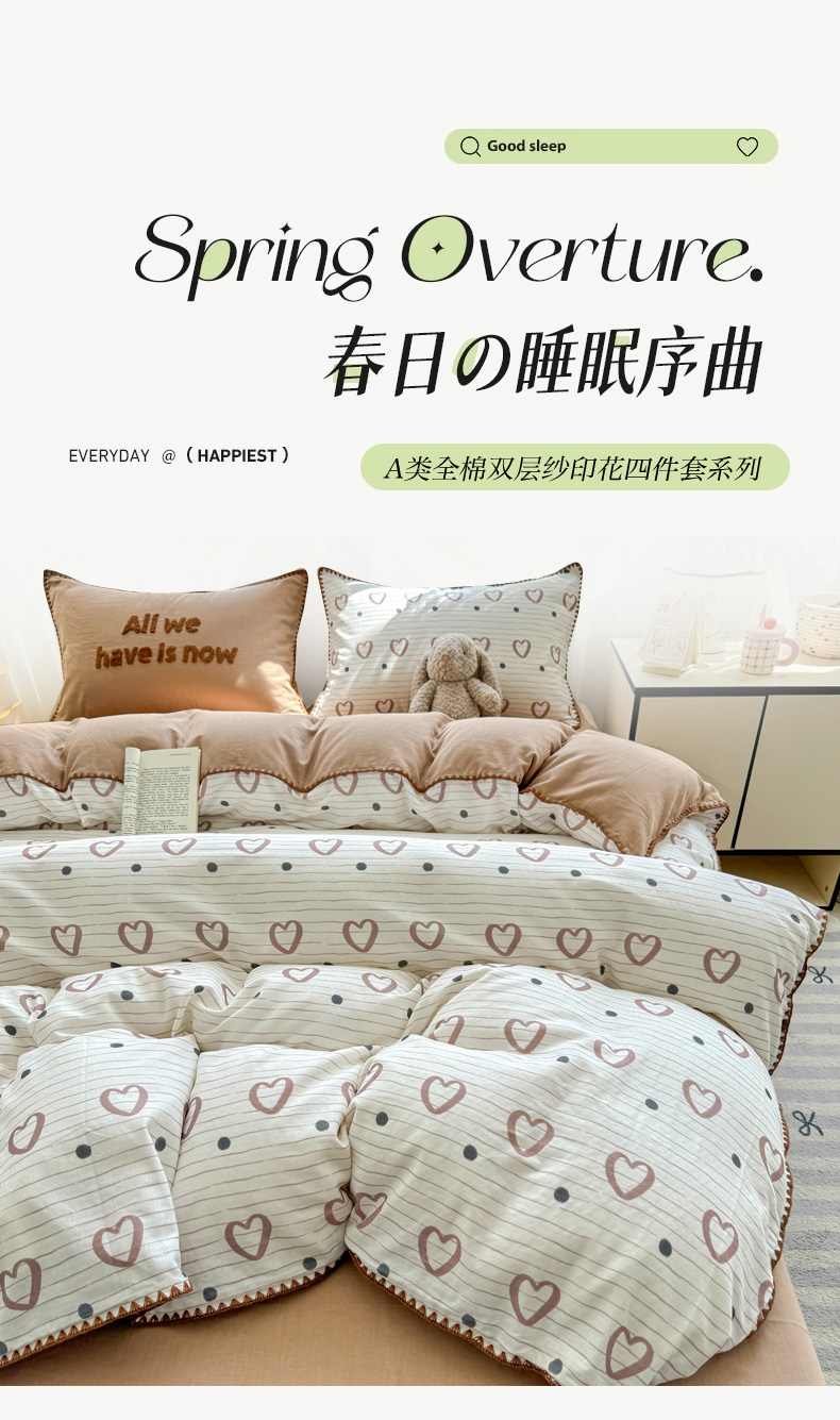 当前位置: 91家纺网 > 商品网购 > 床品套件 > 四件套 > 全棉普通四件套 > 恋佳居 2026新款A类全棉有氧双层纱印花毛巾绣贝壳边四件套 白月光