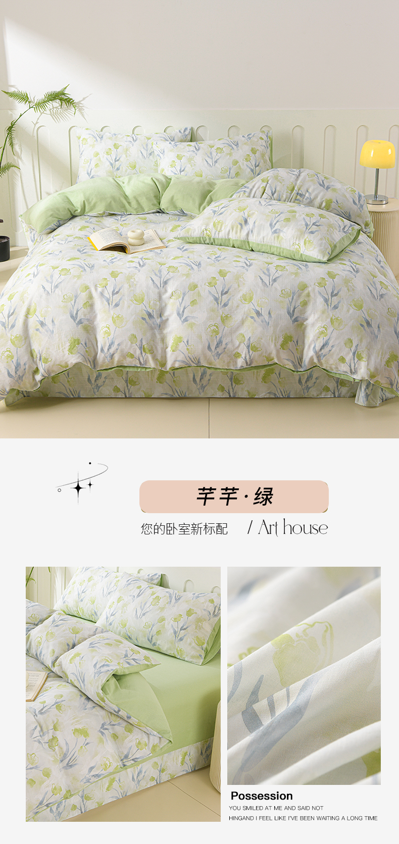 当前位置: 91家纺网 > 商品网购 > 床品套件 > 四件套 > 双层纱四件套 > 金昱纺 2025新款A类全棉纯棉双层纱四件套 芊芊-绿
