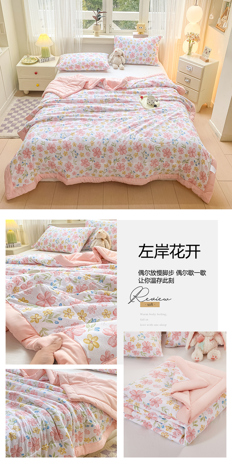商品名称:穆琪 2025年新款手包边小清新夏凉被水洗棉夏凉被印花夏被 左岸花开