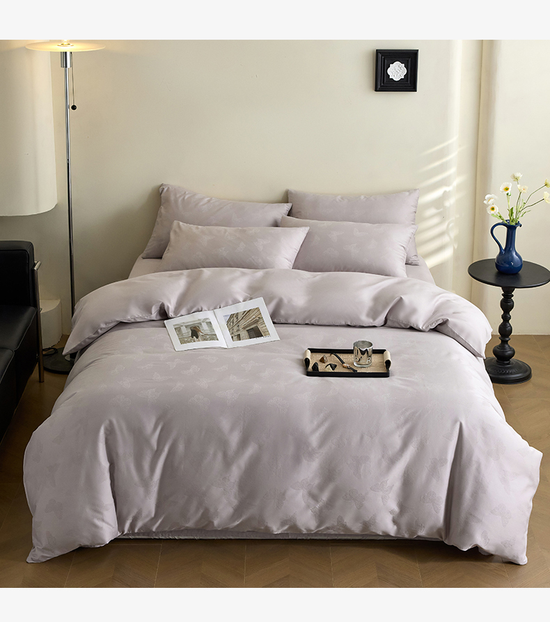 亿梵家居 2025新款高端A类长绒棉四件套全棉提花轻奢全棉四件套 梦蝶-轻奢灰