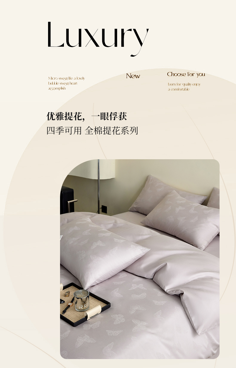 (总)亿梵家居 2025新款高端A类长绒棉四件套全棉提花轻奢全棉四件套,赫本-暮云灰,赫本-柔光粉,赫本-雅致白,卡美伦-香槟色,卡美伦-莺草绿,梦蝶-风信紫,郁金香-迷香粉,郁金香-奶油黄,郁金香-晚波蓝,梦蝶-轻奢灰