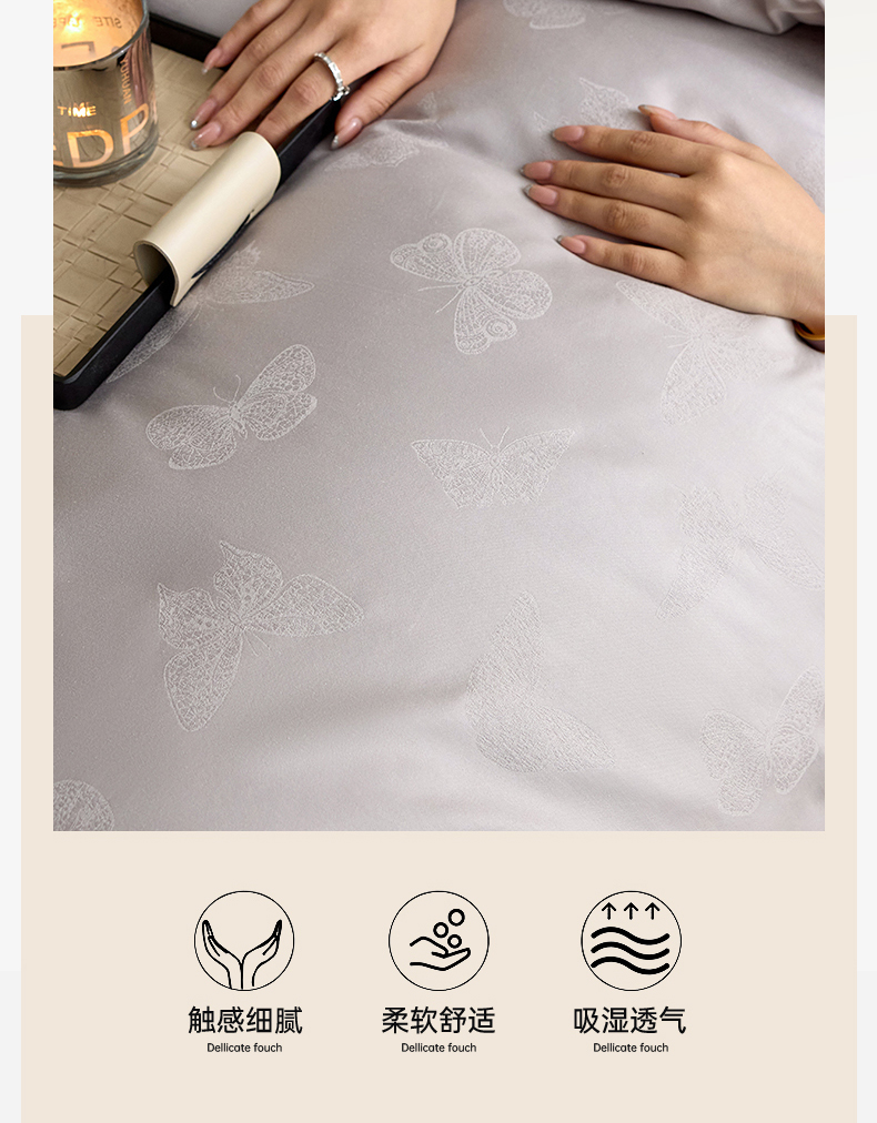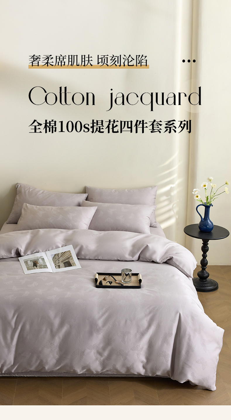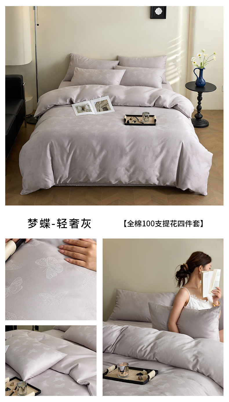 商品名称:亿梵家居 2025新款高端A类长绒棉四件套全棉提花轻奢全棉四件套 梦蝶-轻奢灰