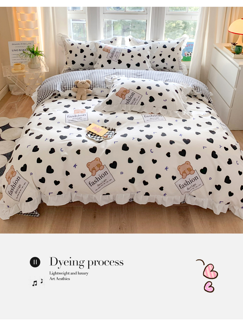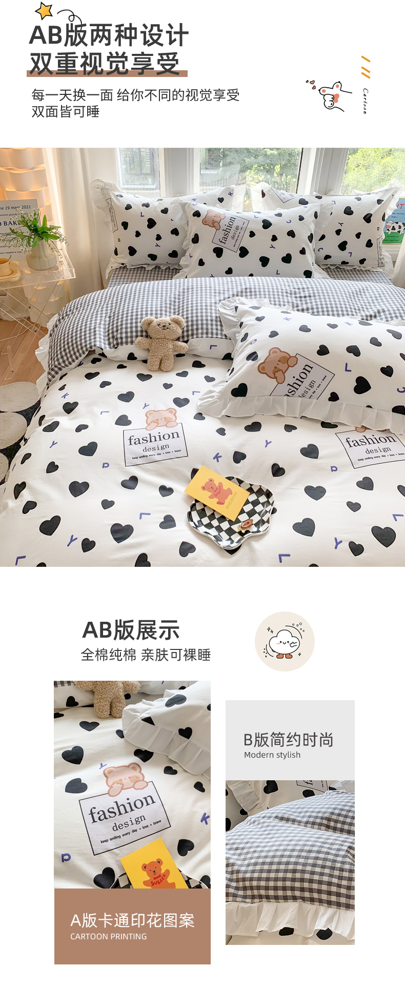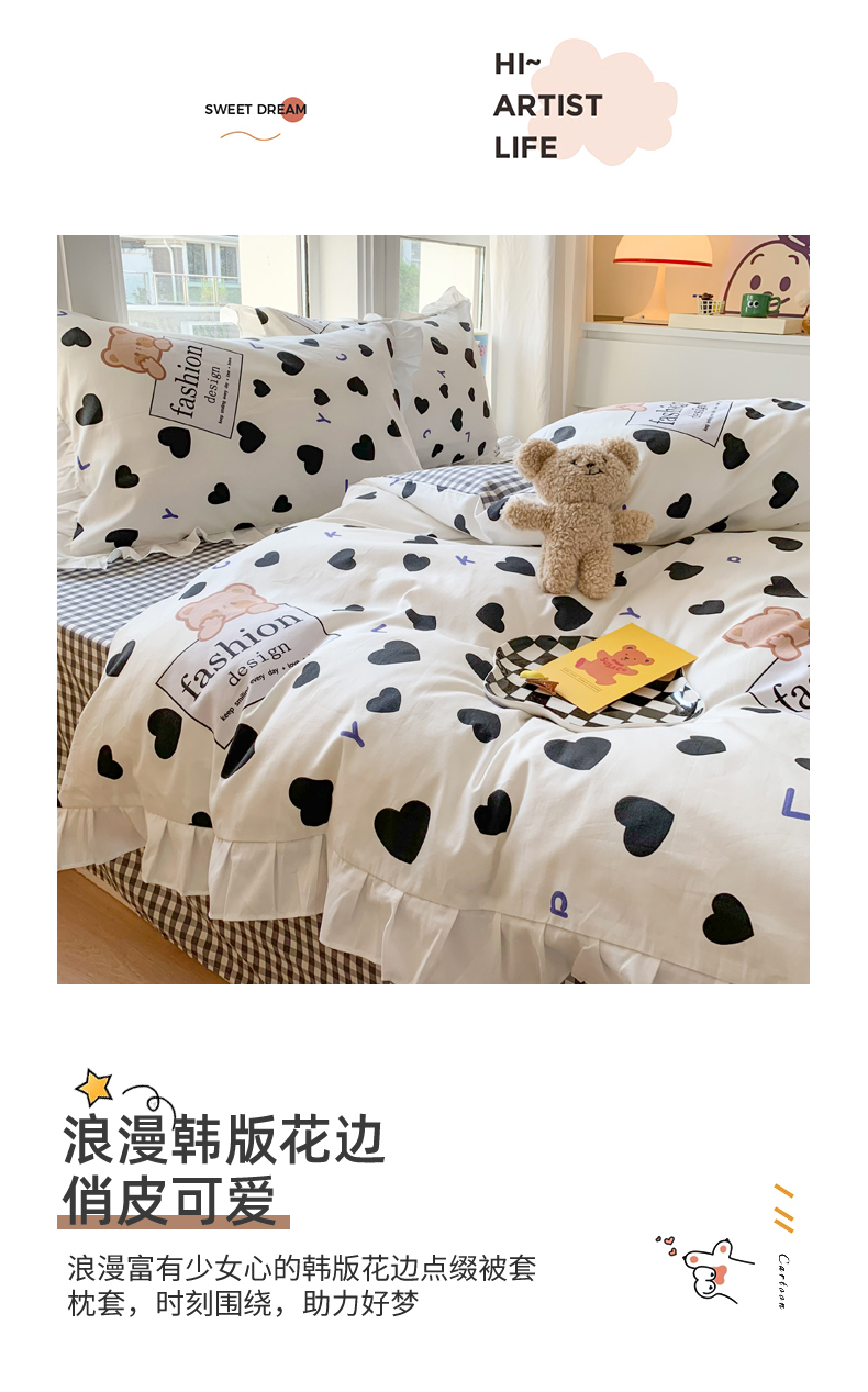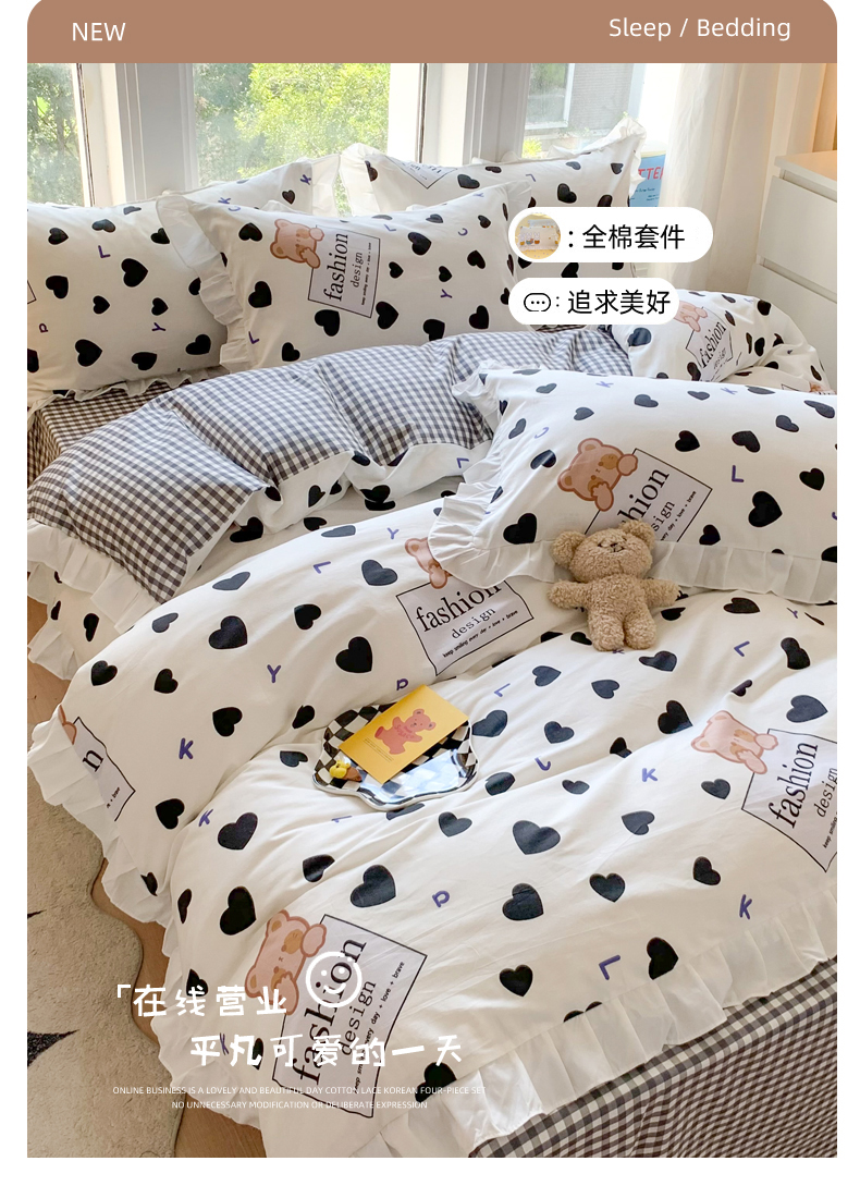 商品名称:玉元坊 2025春夏新款公主风全棉纯棉花边被套床单四件套 桔子熊