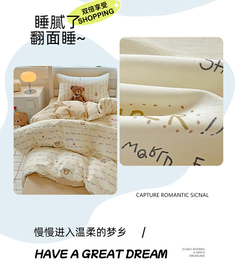 当前位置: 91家纺网 > 商品网购 > 床品套件 > 三件套 > 三兄弟 2025新款全棉印花学生三件套床单床笠四件套被套 红星小熊