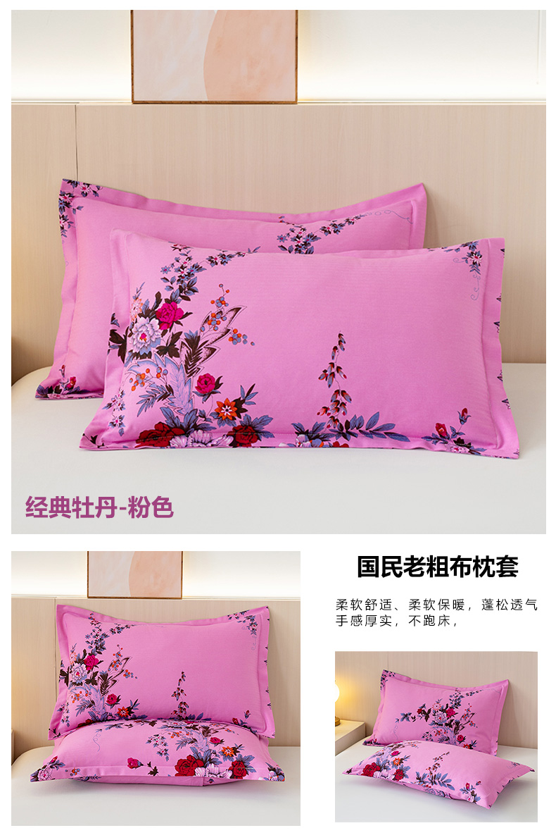 商品名称:居美良品2025新款国民老式床单经典牡丹配套枕套 经典牡丹-粉色