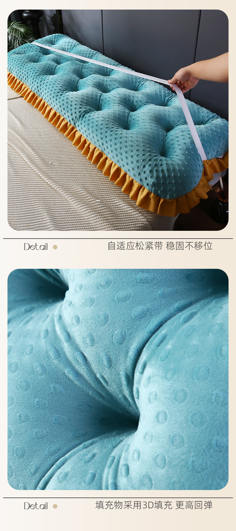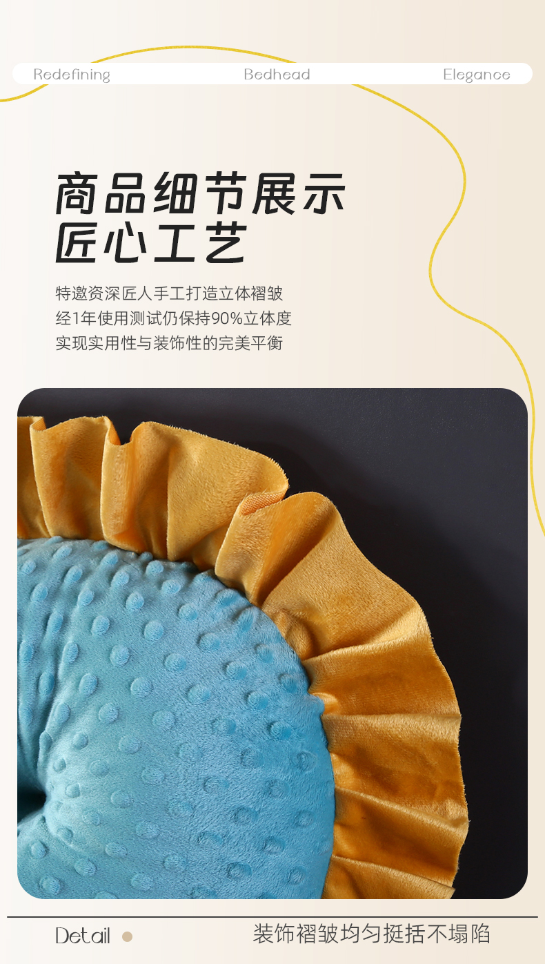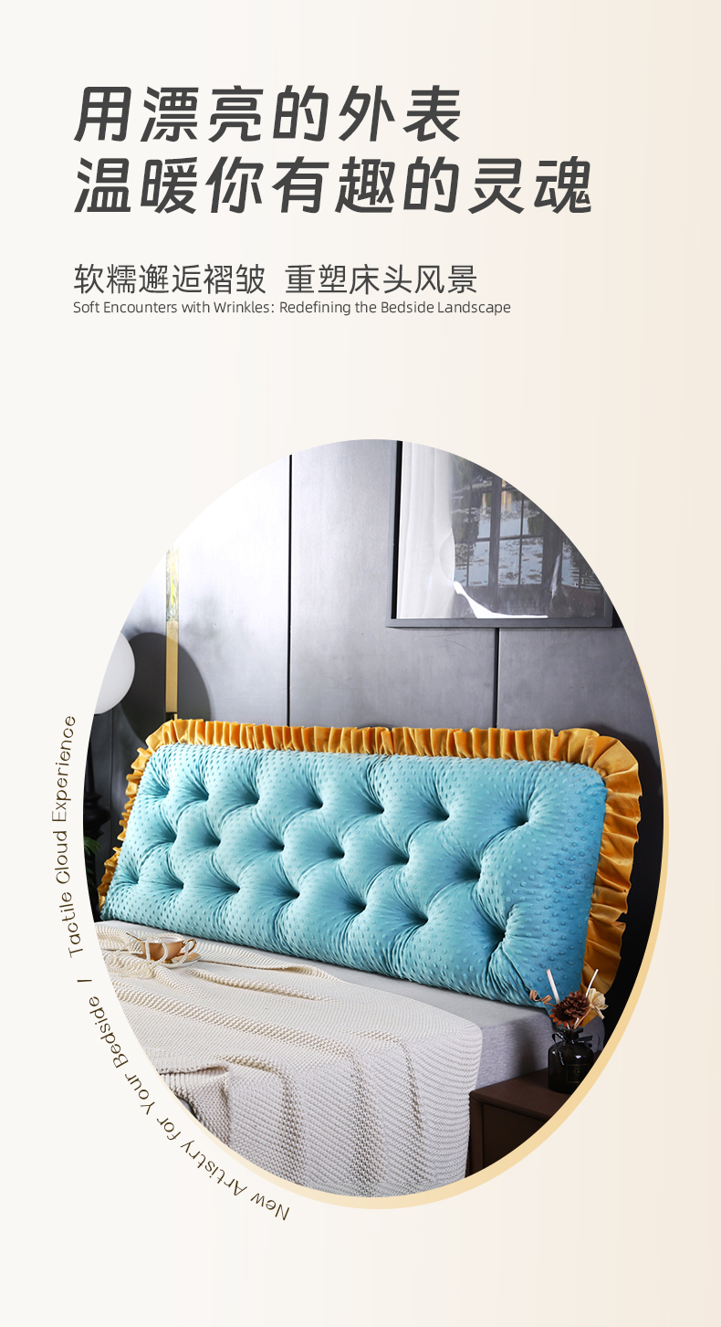 商品名称:永光家居 2025新款绒豆豆床头靠垫 韩版床上软包靠枕抱枕(不供多多) 绒豆豆-蓝色