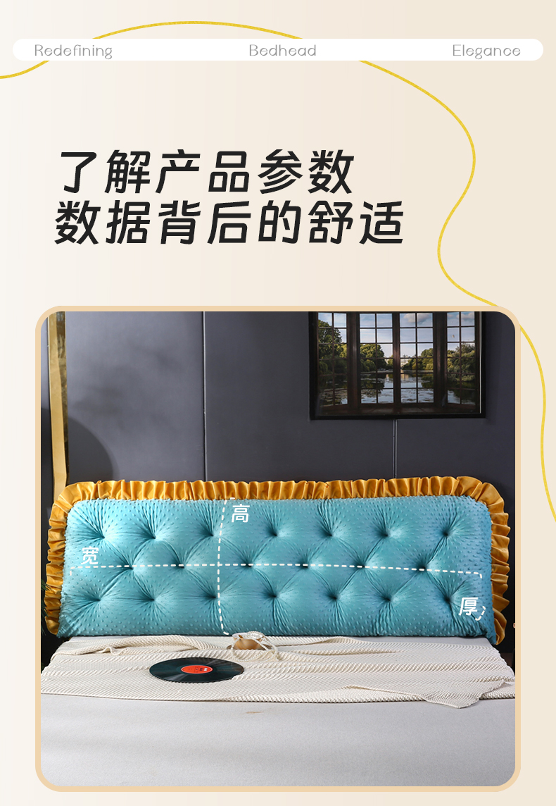 永光家居 2026新款洛熙床头靠垫韩版靠枕榻榻米软包(不供多多),湖蓝,深灰,浅灰,孔雀蓝,驼色