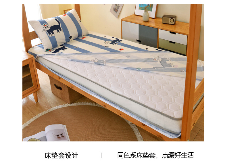 (总)水妙家纺 2025年新款A类全棉纯棉学生宿舍上下铺床垫套六件套三件套,床垫套安德鲁-蓝,床垫套布格熊-蓝,床垫套玛奇朵-灰,床垫套猫达人,床垫套念初-蓝,床垫套星耀皇冠-灰,床垫套宇格-蓝