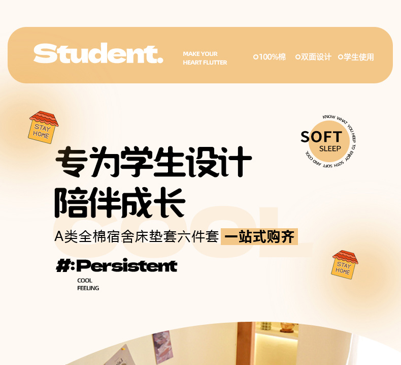 0.9X1.9m床垫套6斤棉花被六件套 | ¥263.00 |