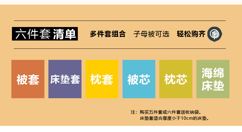 0.9X1.9m床垫套7.3斤羽丝棉子母被六件套 | ¥277.00 |