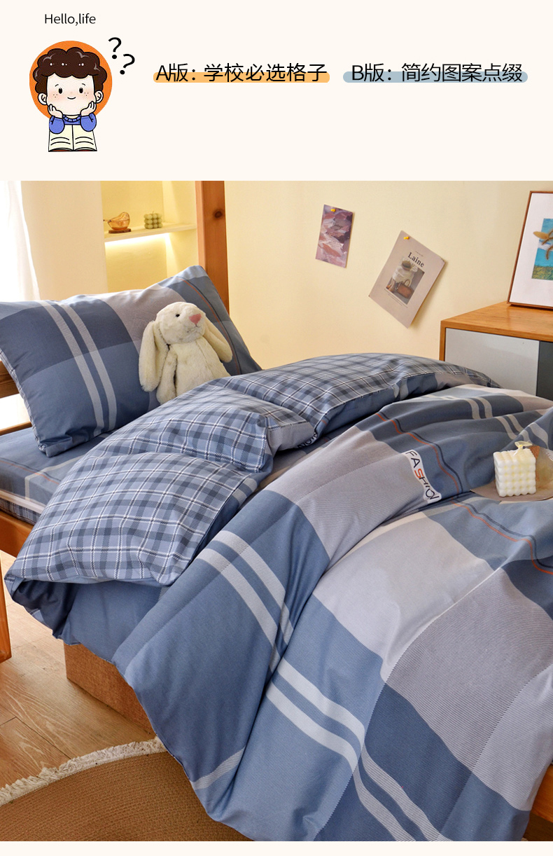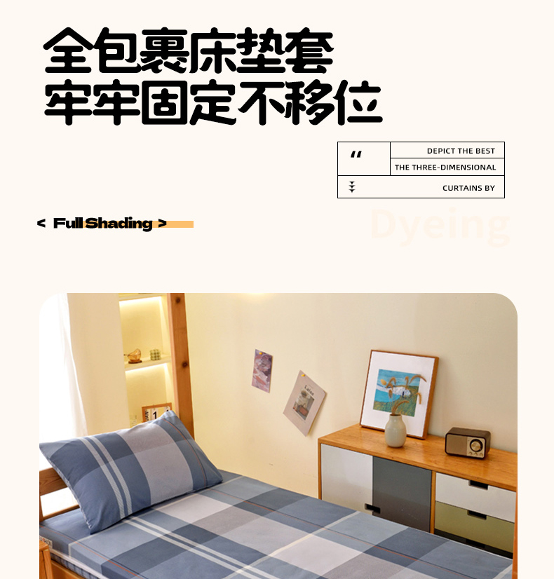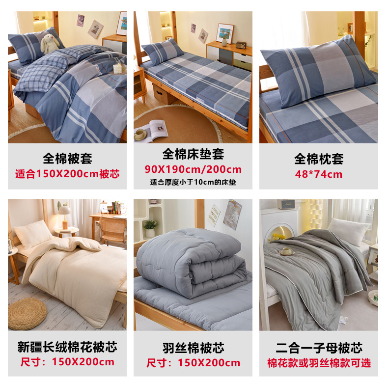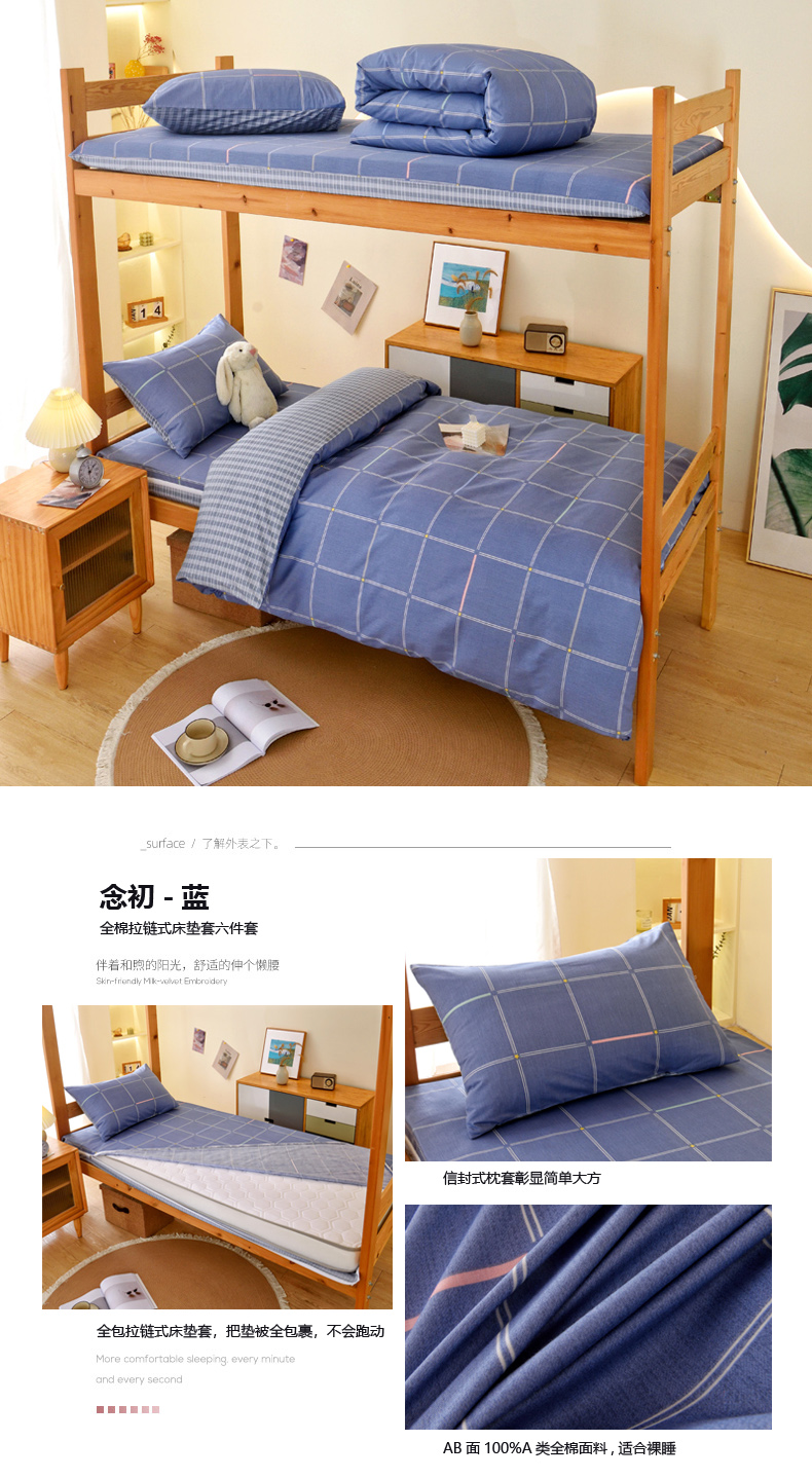 当前位置: 91家纺网 > 商品网购 > 床垫/床褥 > 普通床垫 > 水妙家纺 2025年新款A类全棉纯棉学生宿舍上下铺床垫套六件套三件套 床垫套安德鲁-蓝