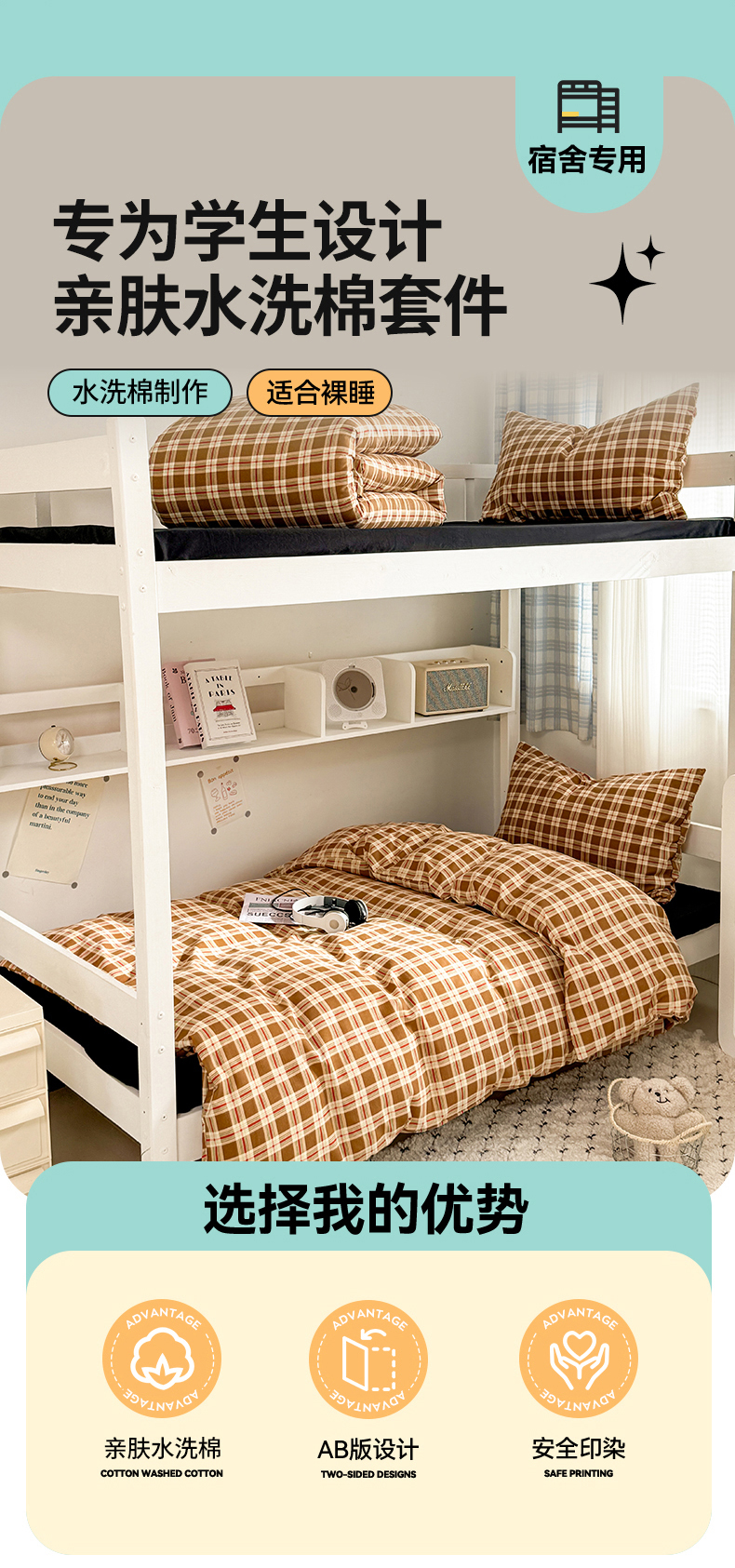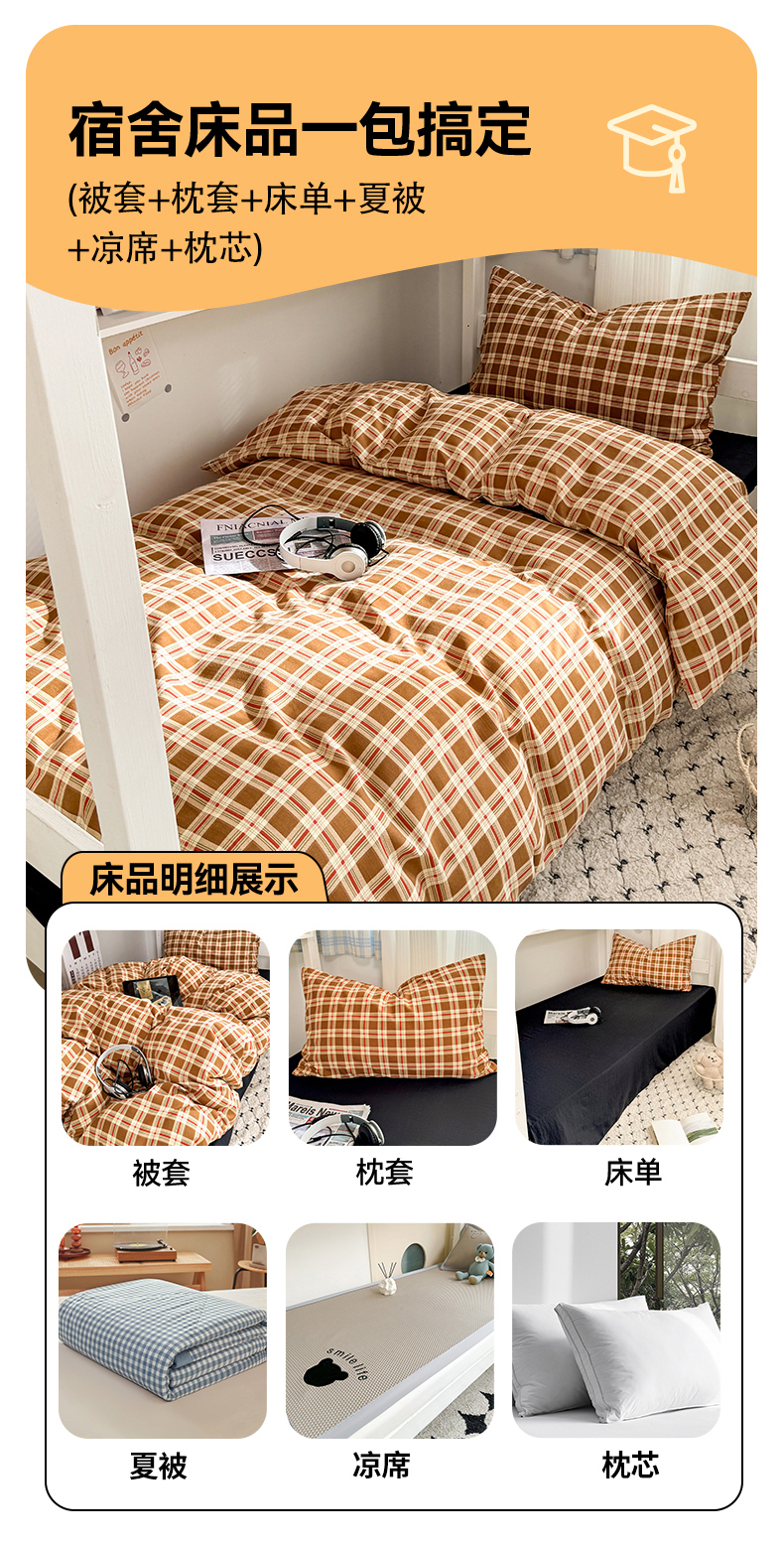 当前位置: 91家纺网 > 商品网购 > 床品套件 > 三件套 > 多品家纺 2025新款水洗棉学生宿舍上下铺大礼包三件套六件套 时光黑