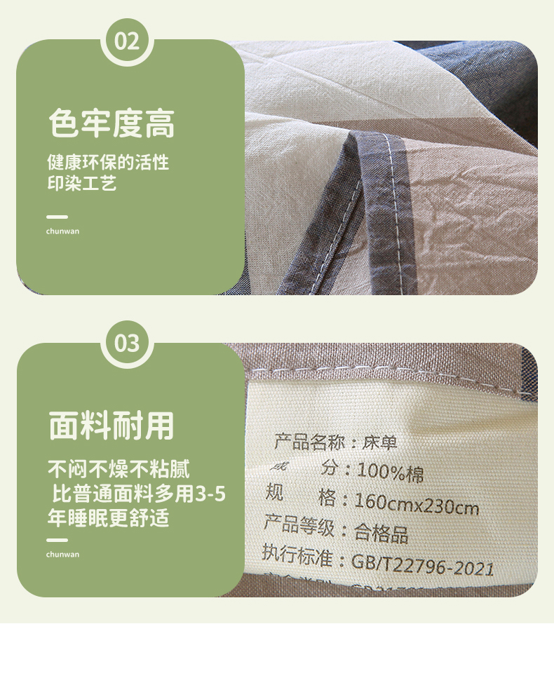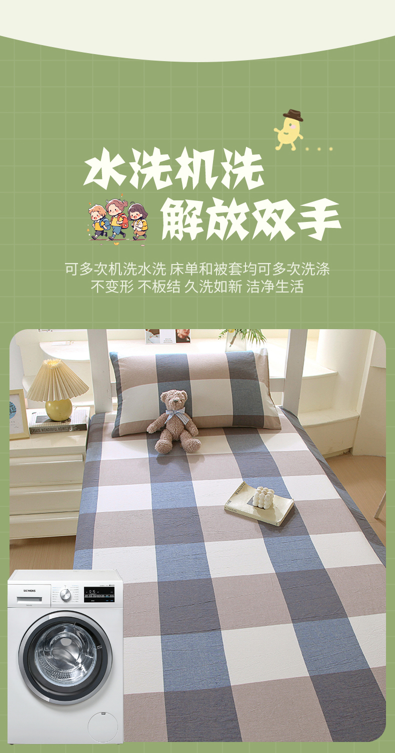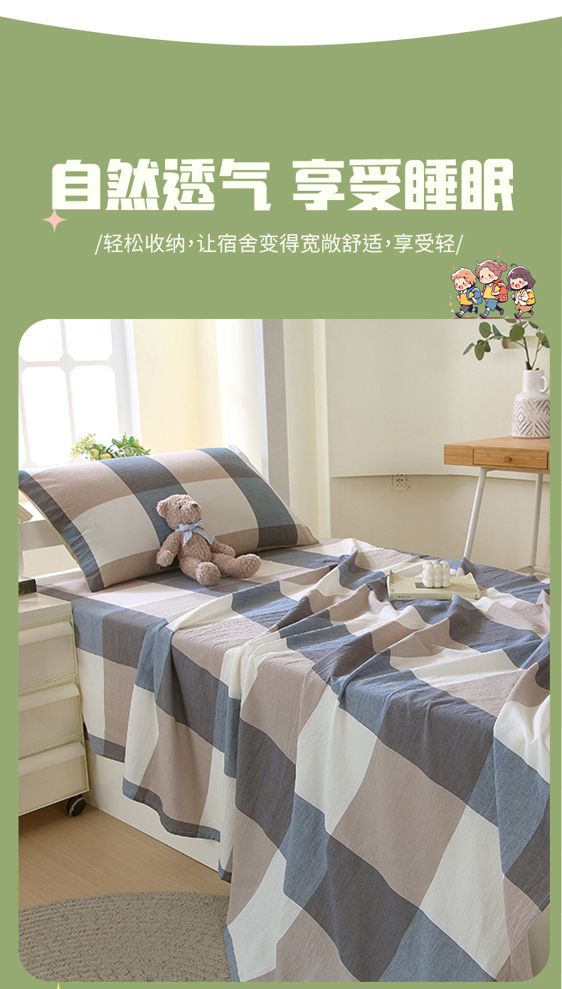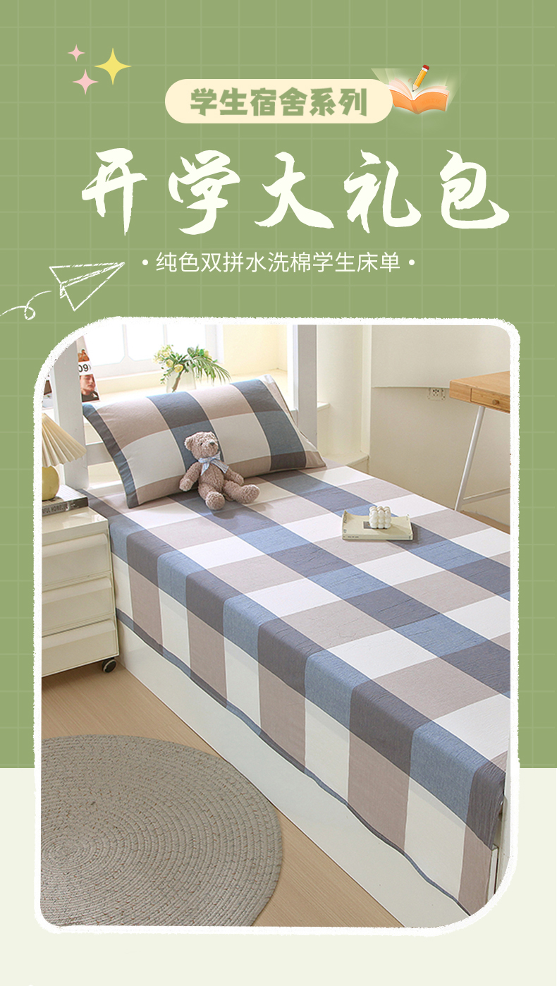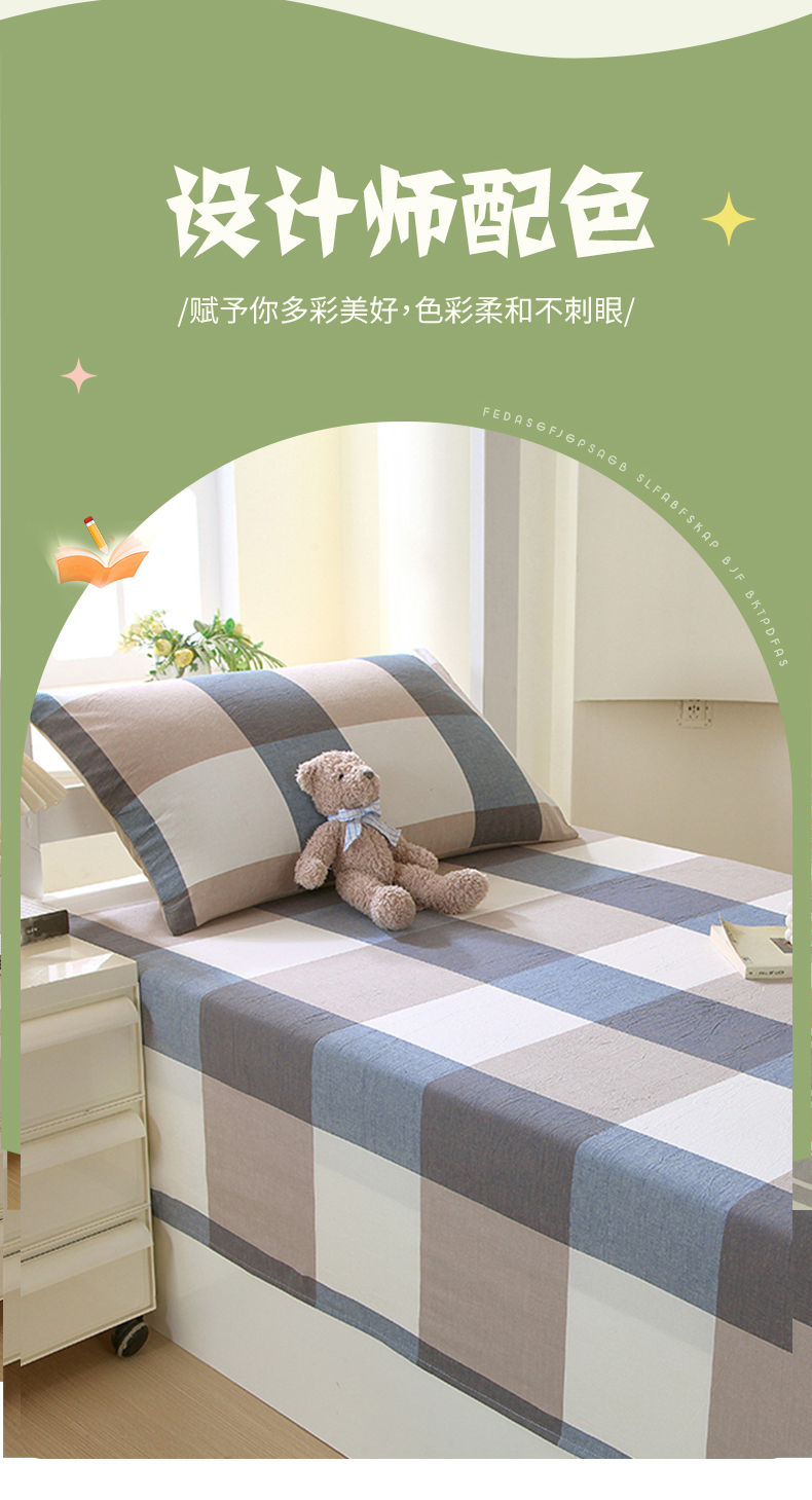 商品名称:春皖家纺 2025新款学生季全棉纯棉色织AB版水洗棉单品系列-单床单 床单单件 素雅-蓝大格
