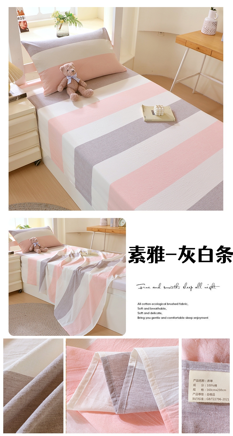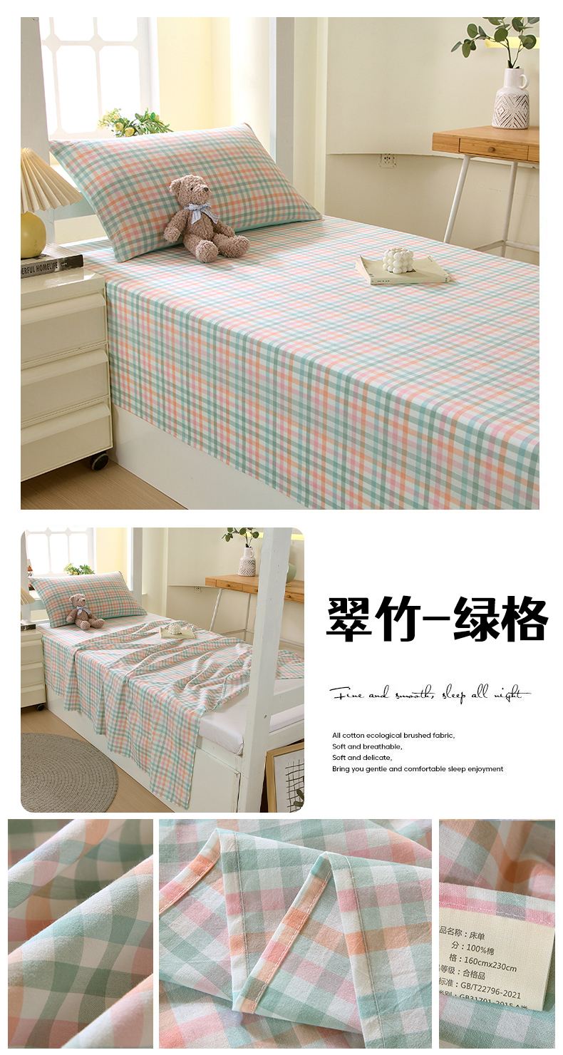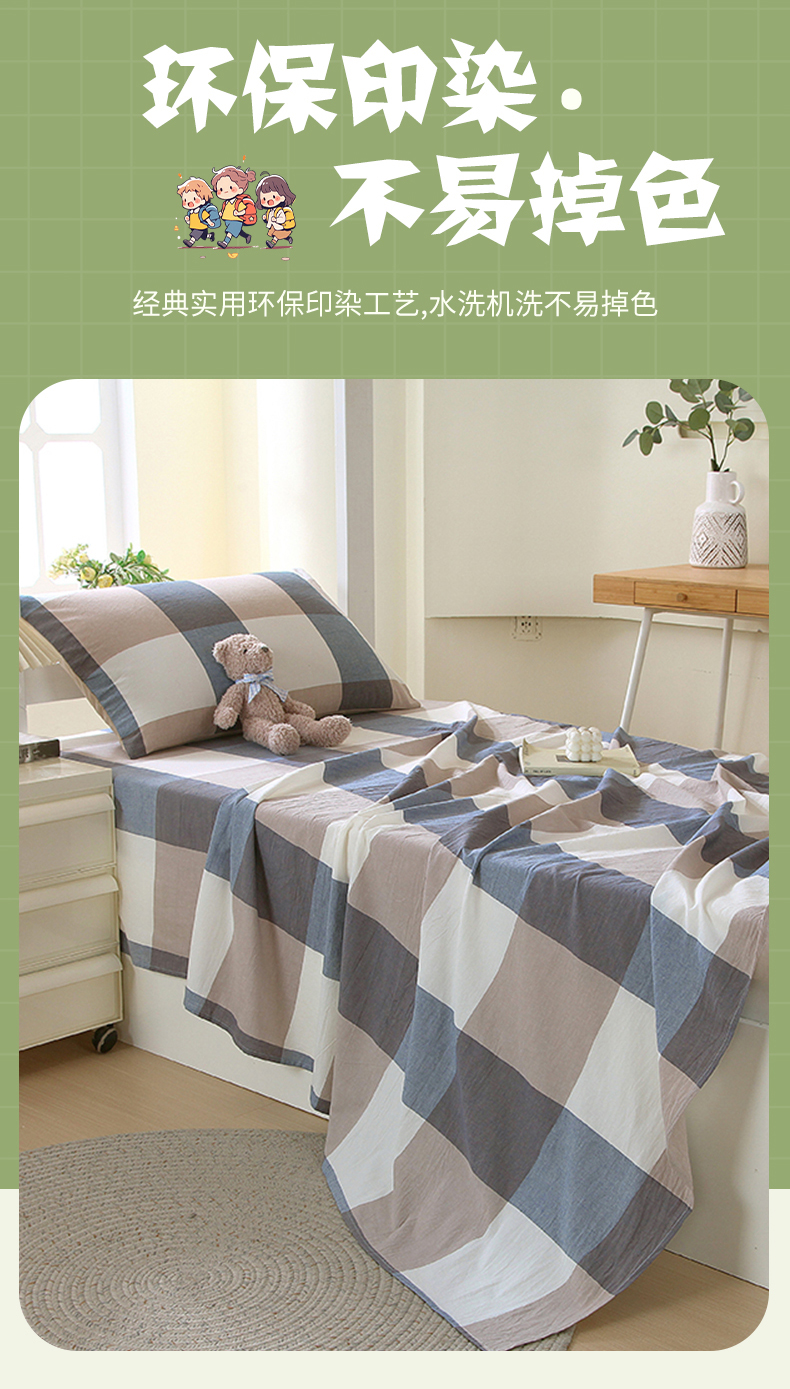 春皖家纺 2025新款学生季全棉纯棉色织AB版水洗棉单品系列-单床单 床单单件 素雅-蓝大格