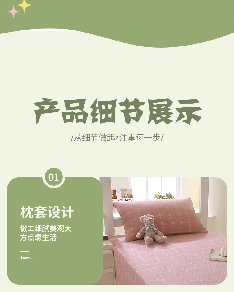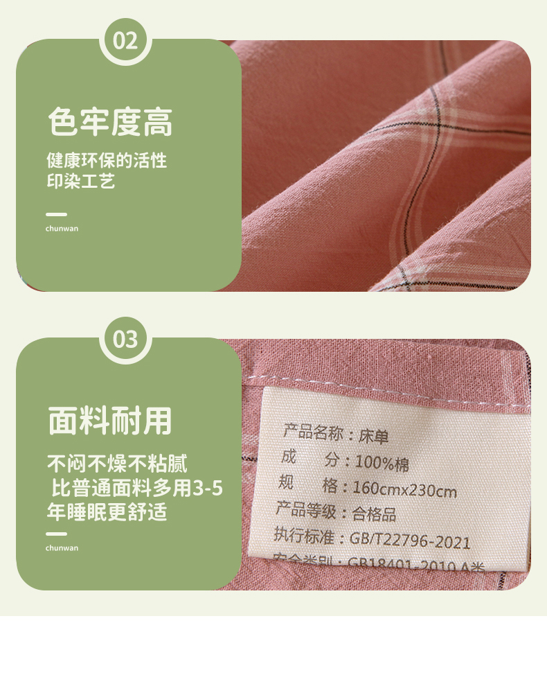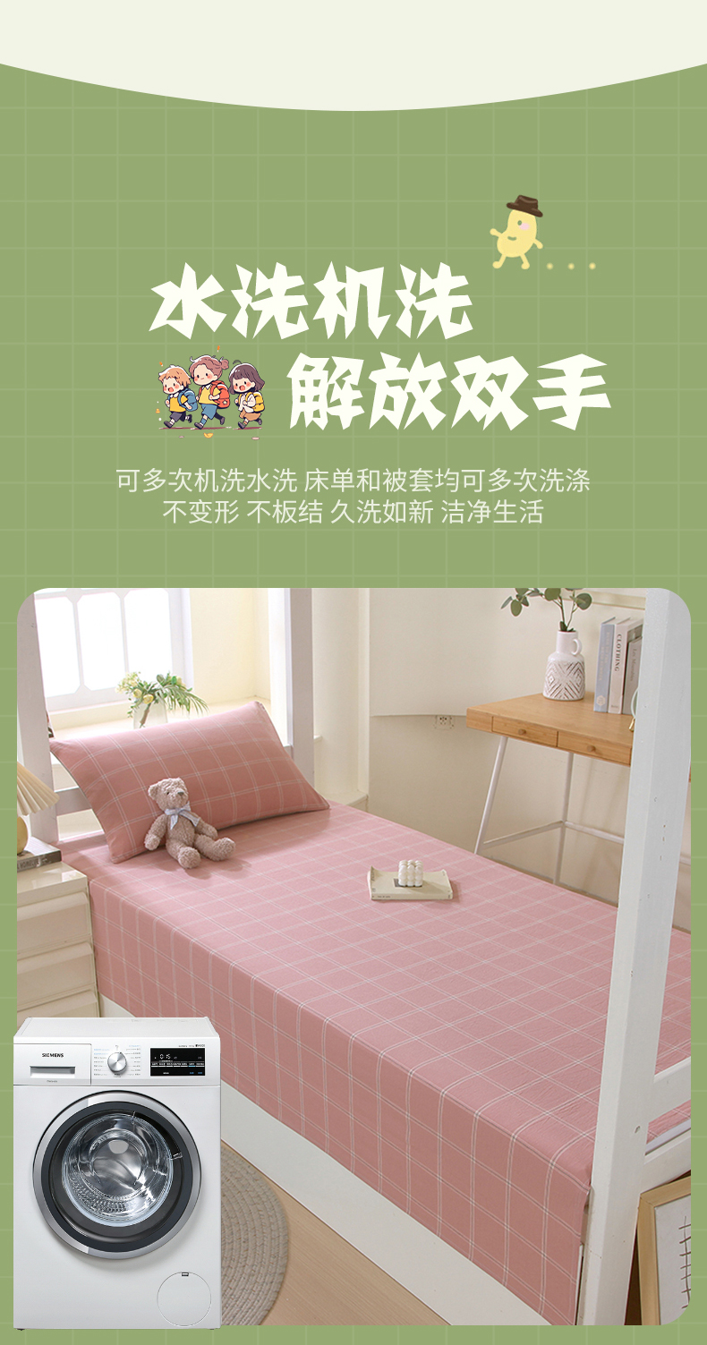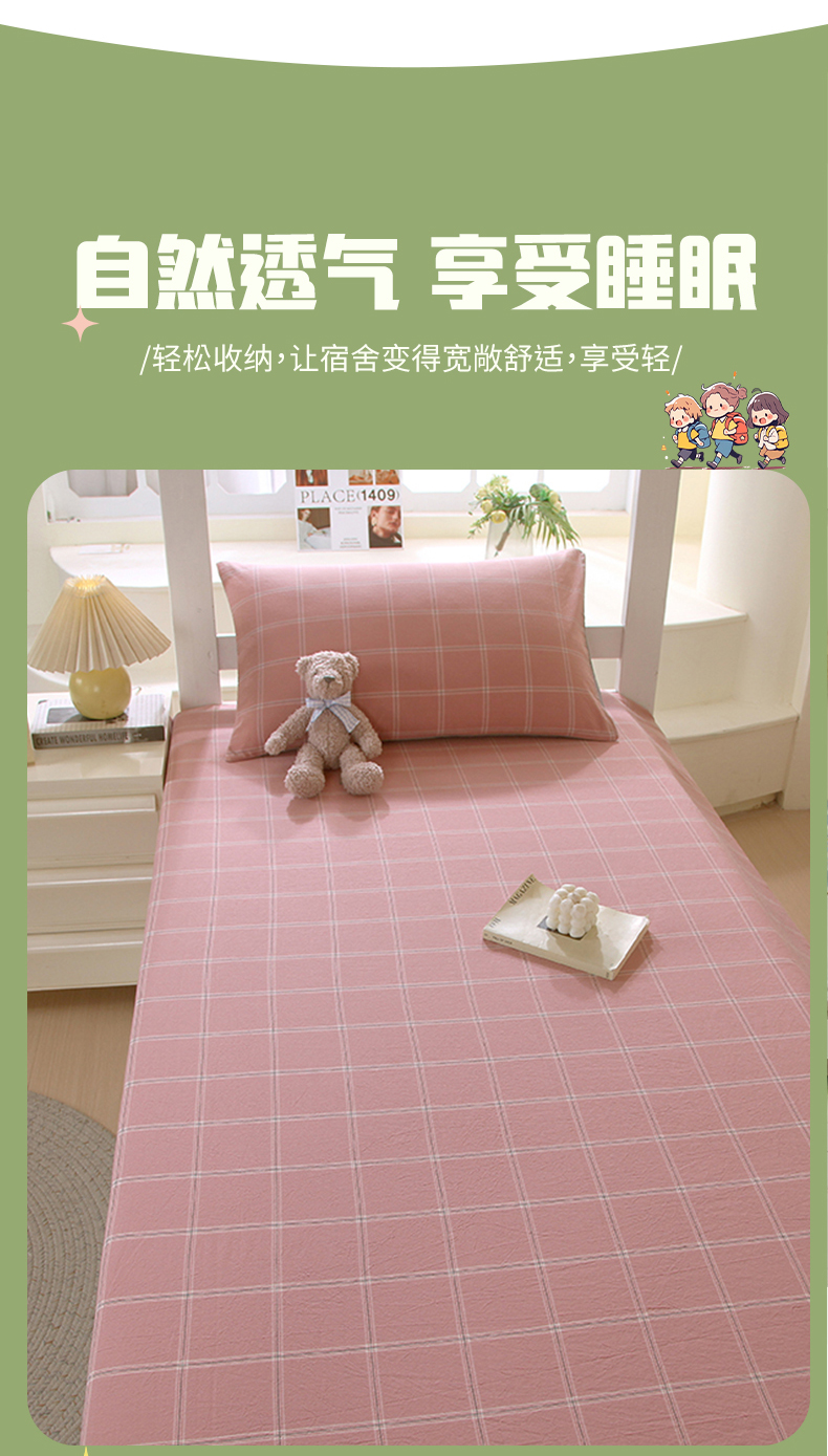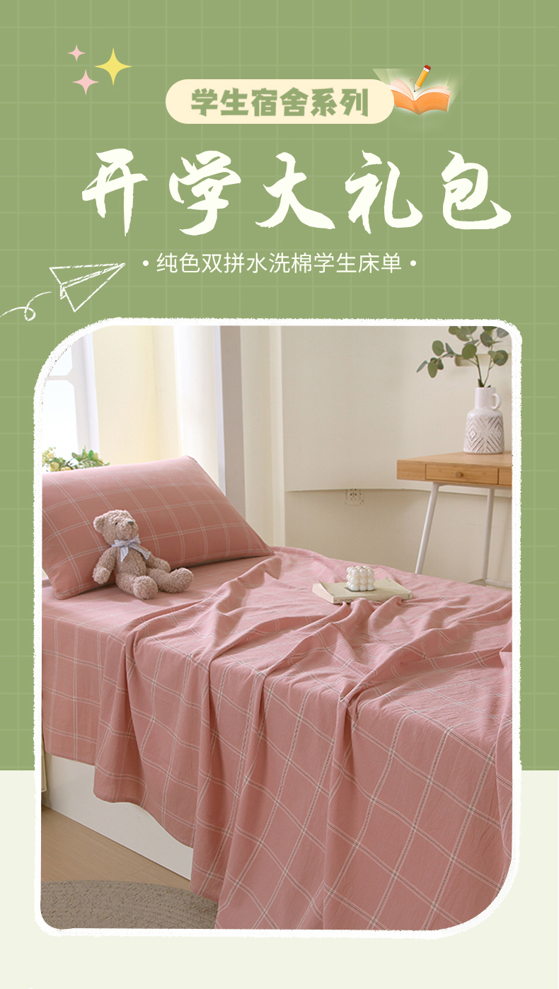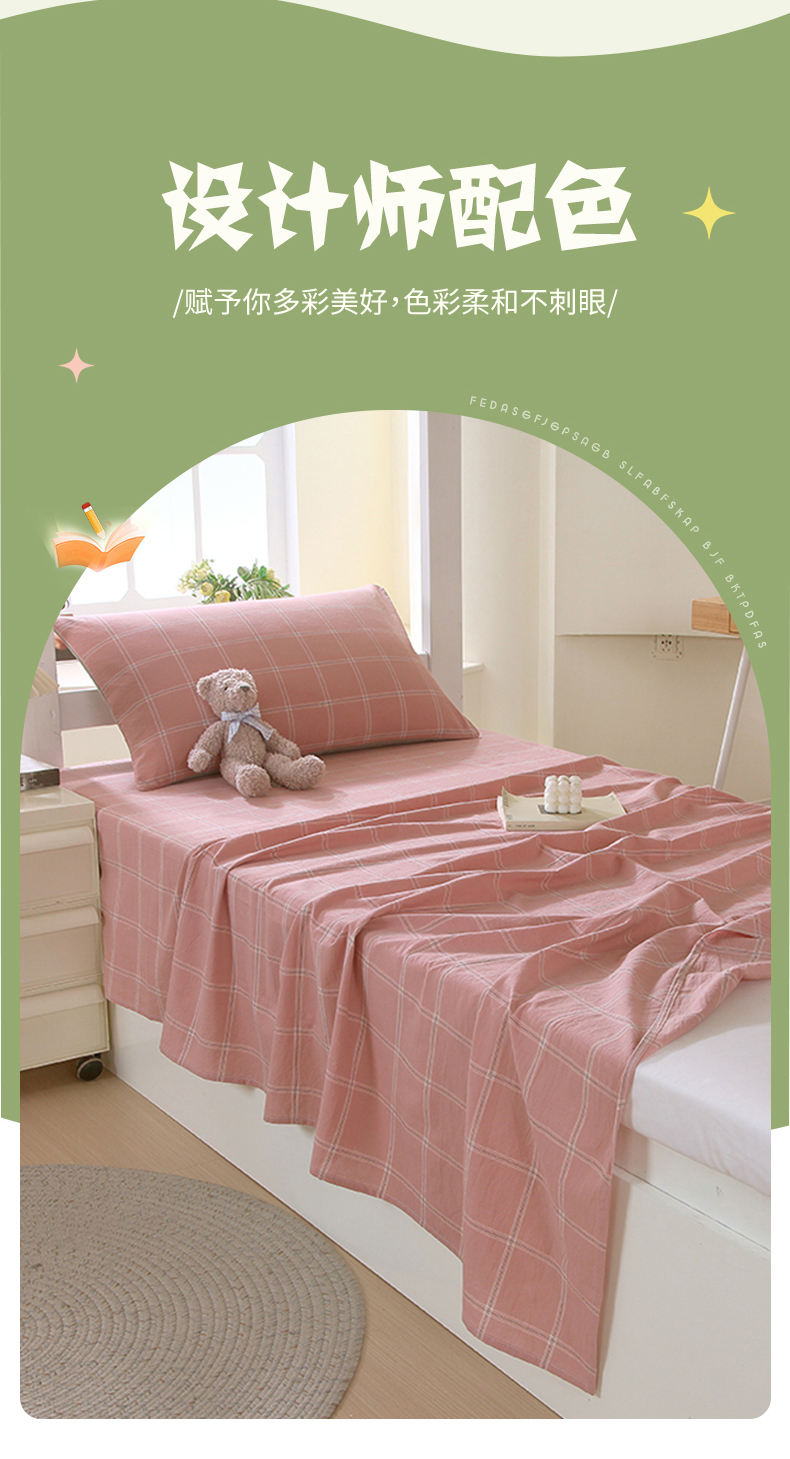 商品名称:春皖家纺 2025新款学生季全棉纯棉色织AB版水洗棉单品系列-单床单 床单单件 素雅-韵粉
