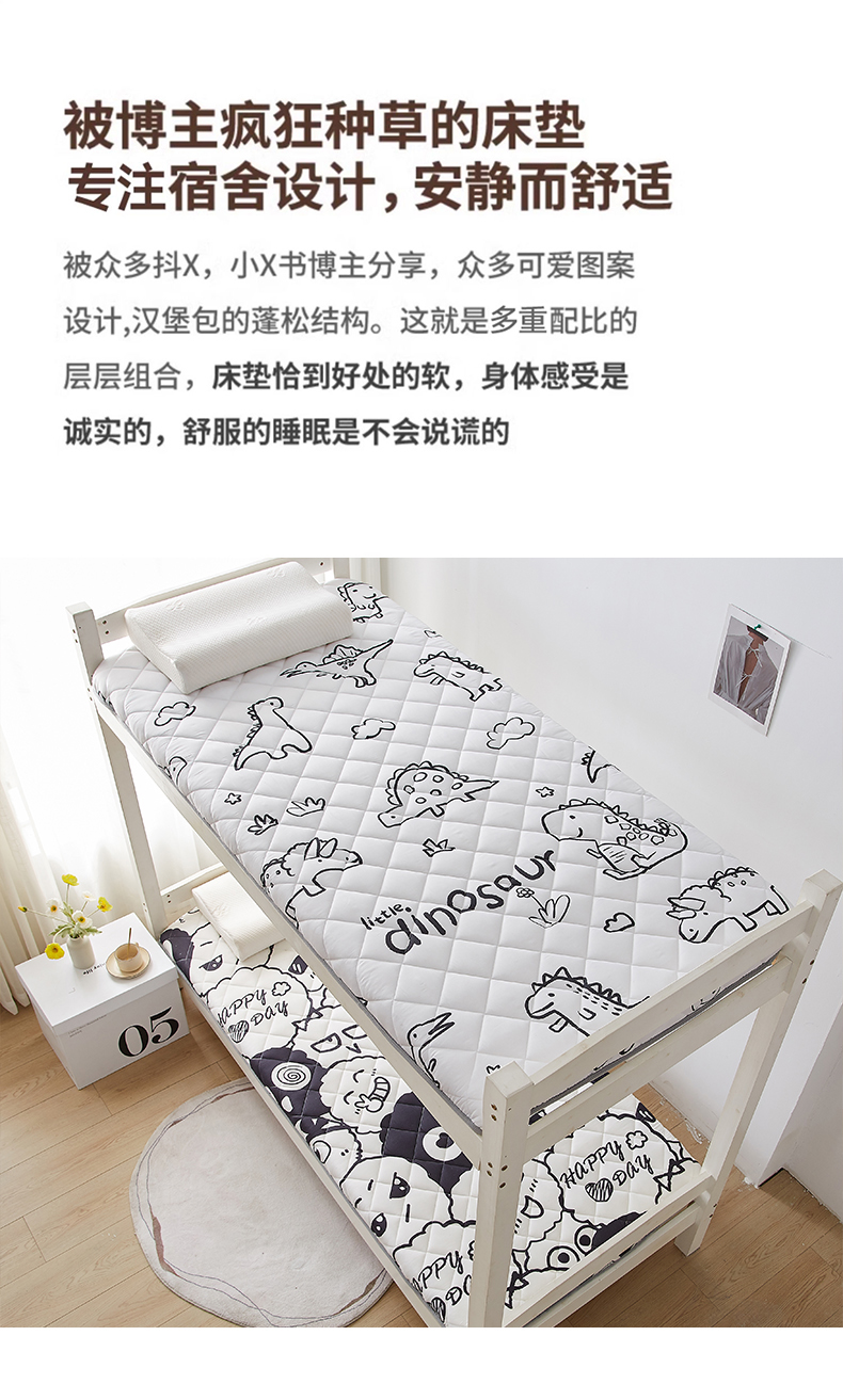 暖季家纺 2025新款磨毛印花亲肤学生床垫 素描恐龙