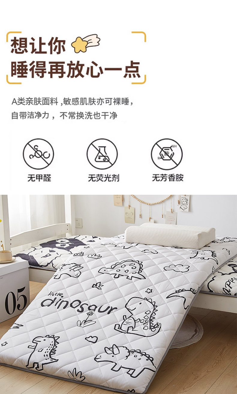 • 91家纺网 家纺一手货源 找家纺 暖季家纺 2025新款磨毛印花亲肤学生床垫 素描恐龙