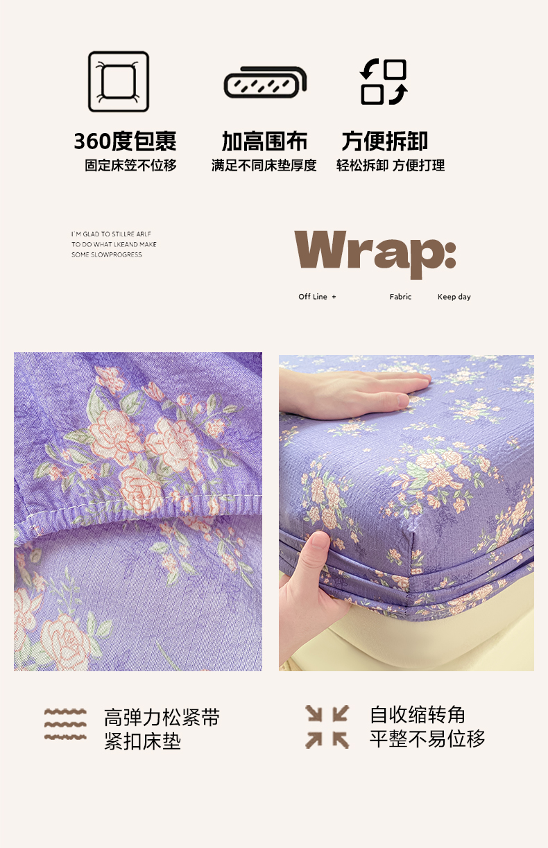 • 91家纺网 家纺一手货源 找家纺 (总)米柳家纺 2025新款直播爆款7A抗菌简约木棉皱皱纱床笠(抖音控价单件49.9 三件套59.9),百合紫,初夏,粉黛,福瓜,兰亭,漫舞,倩影