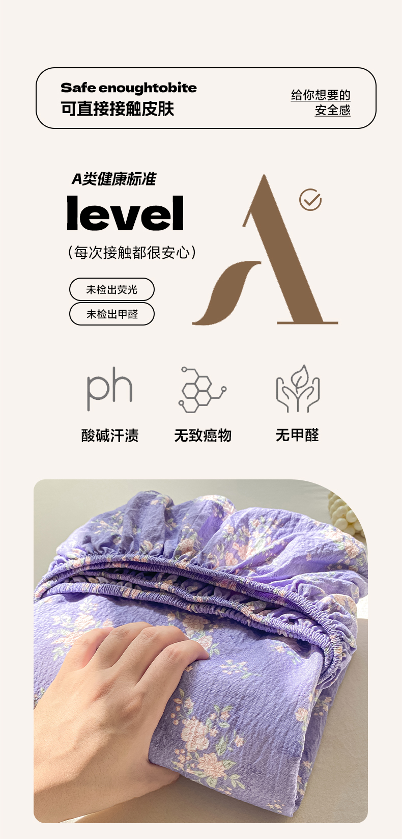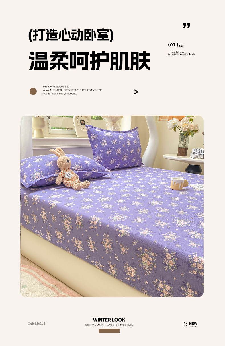 (总)米柳家纺 2025新款直播爆款7A抗菌简约木棉皱皱纱床笠(抖音控价单件49.9 三件套59.9),百合紫,初夏,粉黛,福瓜,兰亭,漫舞,倩影