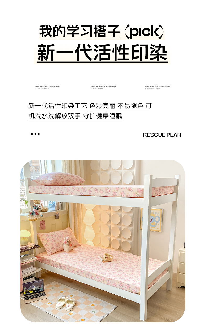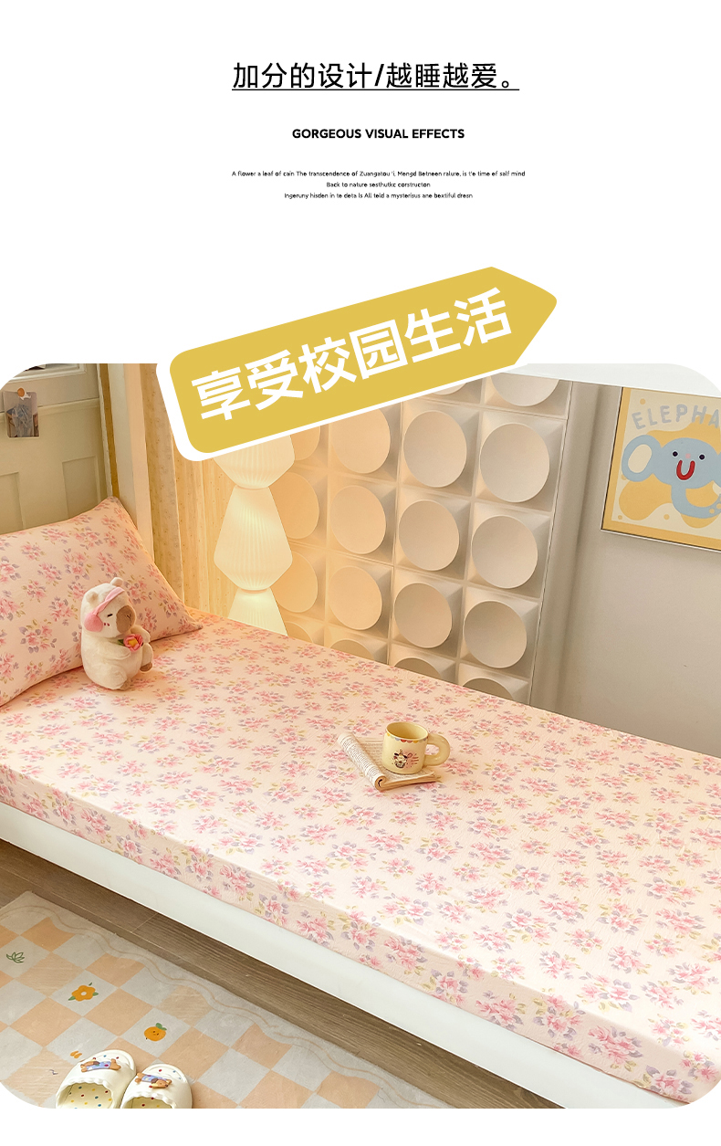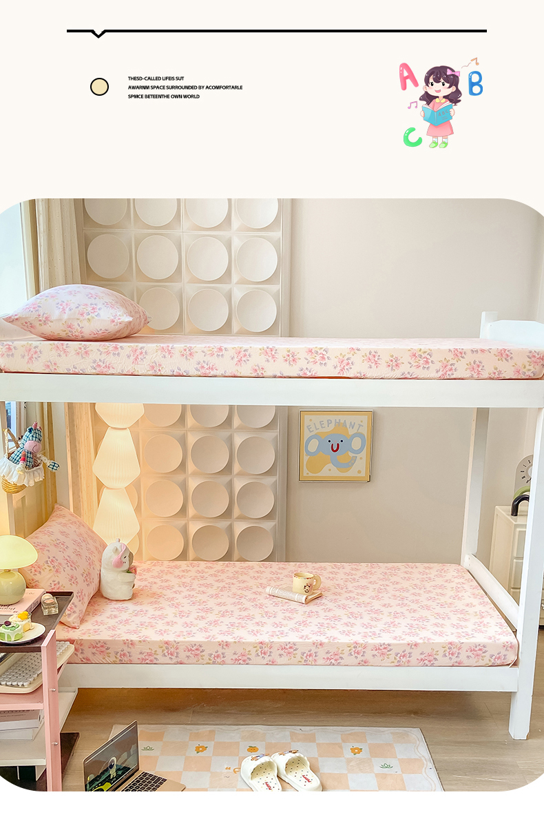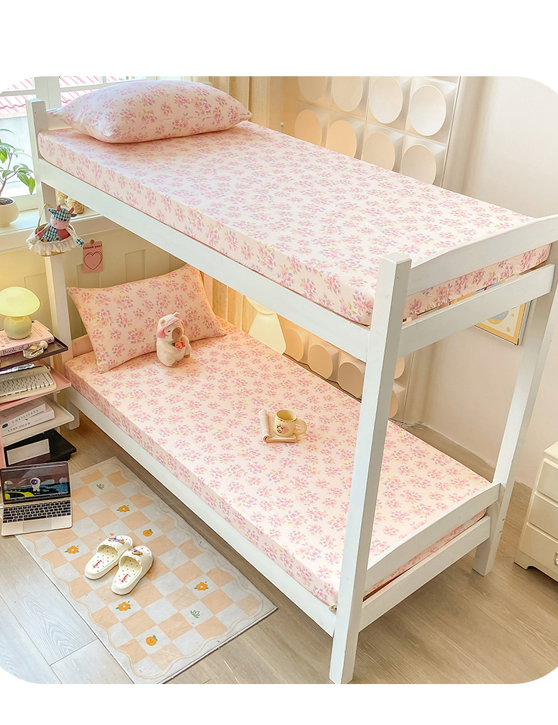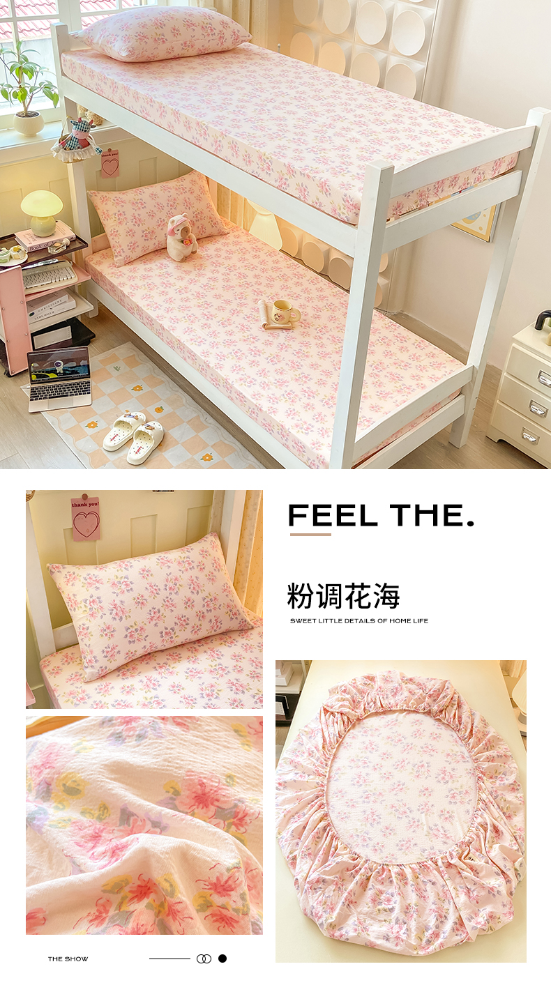 眠势力 2025新款ins云感双层纱学生宿舍上下铺奶油风云感四季款单床笠床笠单件 粉调花海