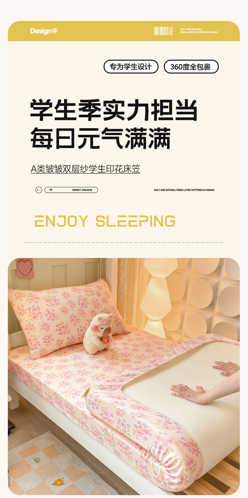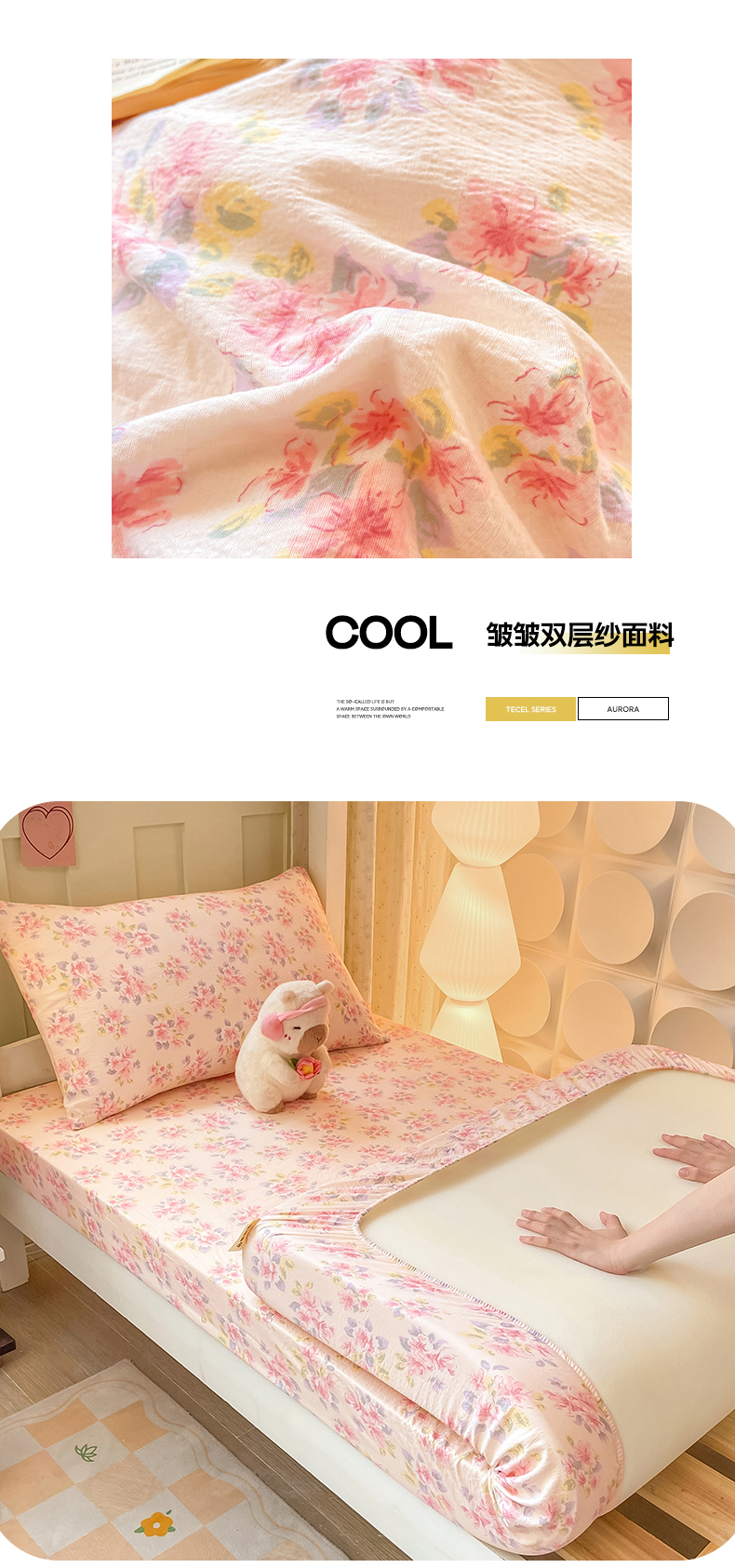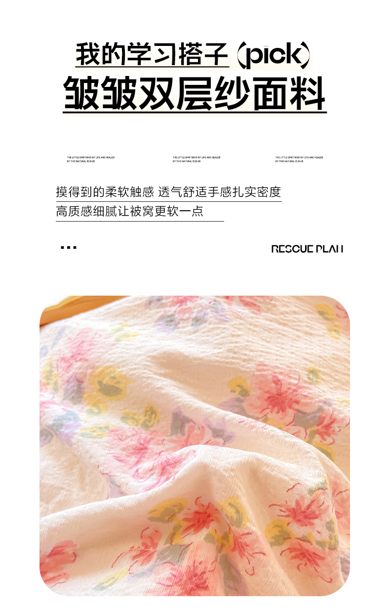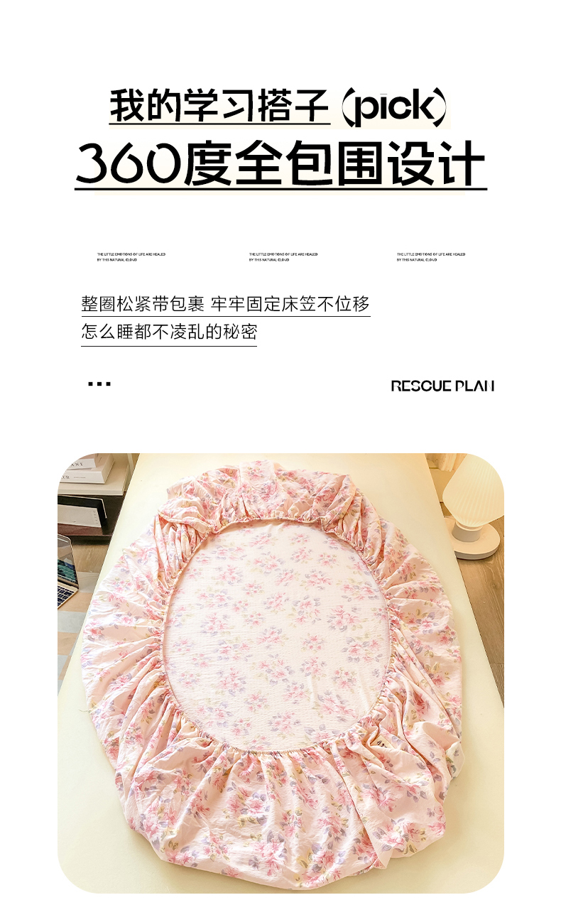 • 91家纺网 家纺一手货源 找家纺 眠势力 2025新款ins云感双层纱学生宿舍上下铺奶油风云感四季款单床笠床笠单件 粉调花海