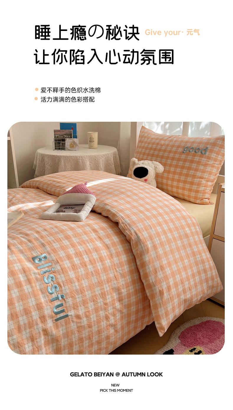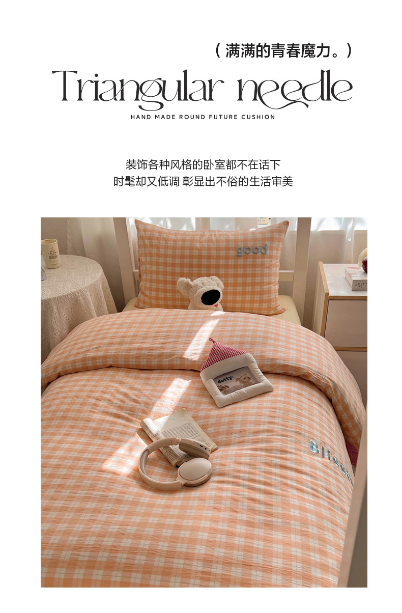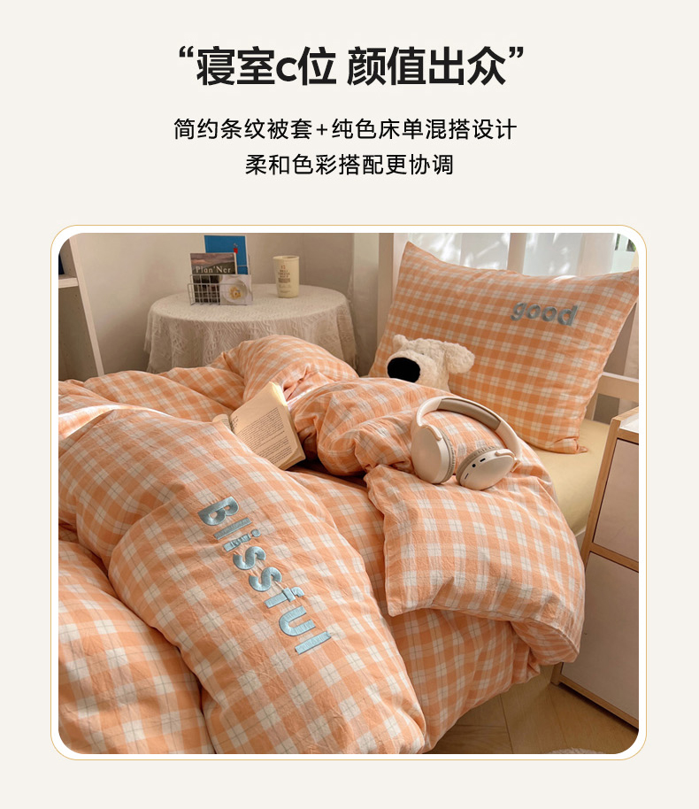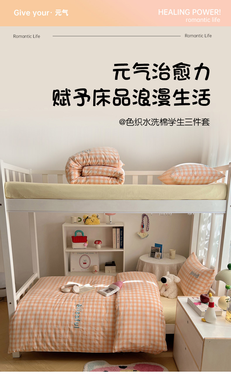 当前位置: 91家纺网 > 商品网购 > 床品套件 > 三件套 > 丽涵家纺 2025新款色织水洗棉刺绣学生三件套 尚格-橘
