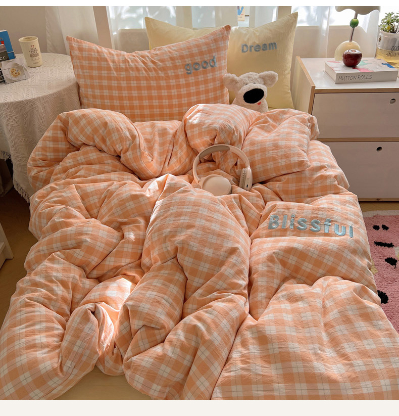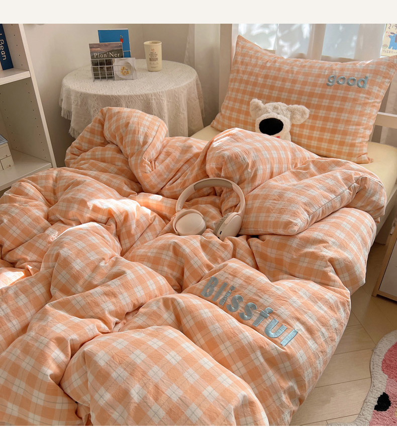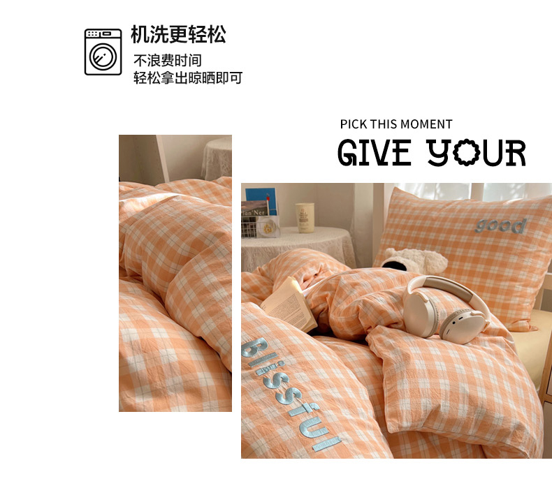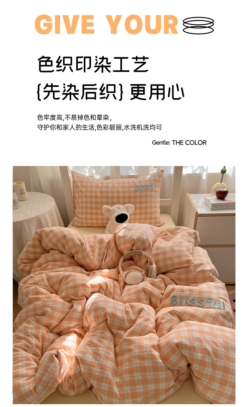 当前位置: 91家纺网 > 商品网购 > 床品套件 > 三件套 > 丽涵家纺 2025新款色织水洗棉刺绣学生三件套 尚格-橘